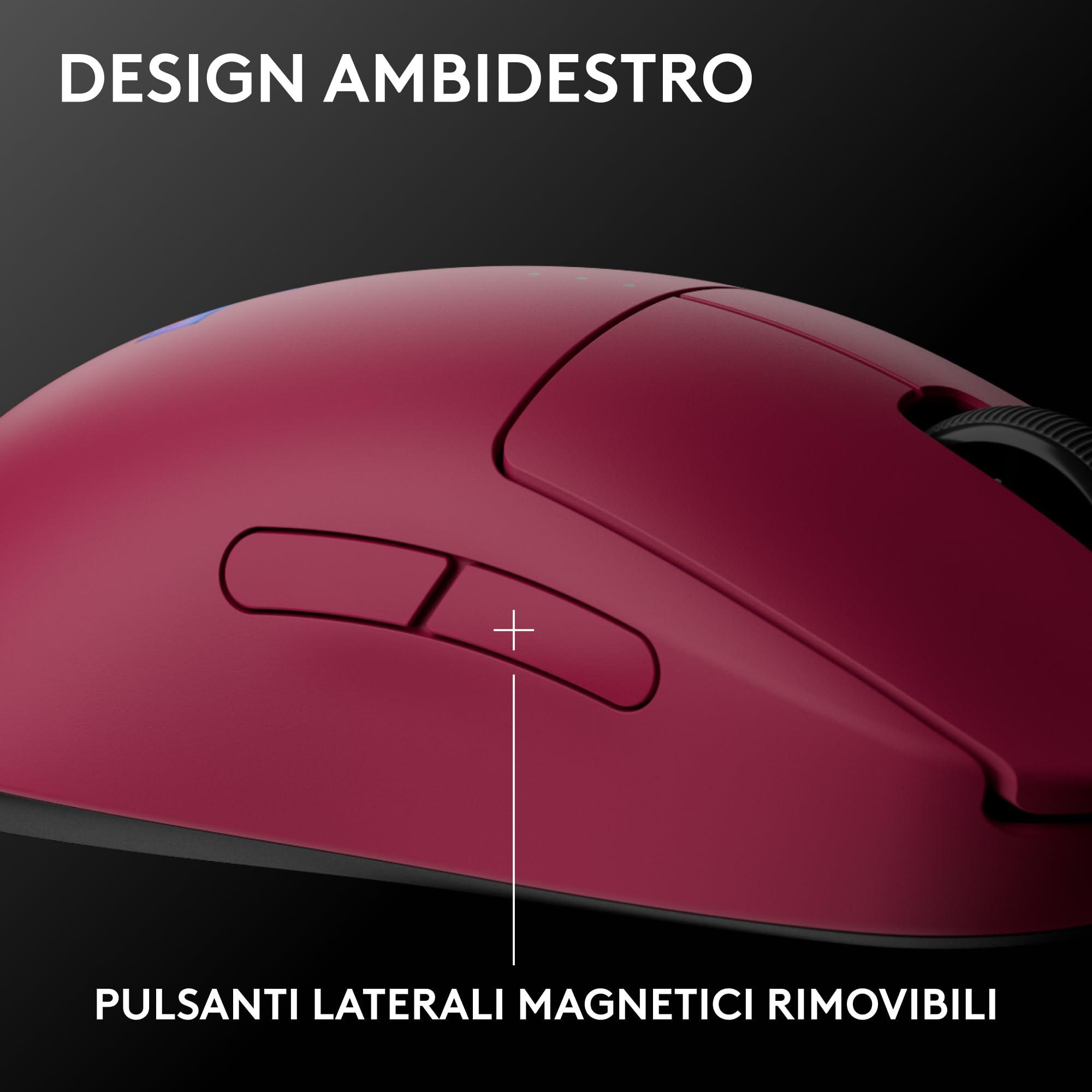Logitech G PRO 2 LIGHTSPEED Mouse da gioco senza fili, fino a 4 pulsanti laterali magnetici personalizzabili e commutabili, ricarica USB-C, sensore da 32k DPI per PC/Mac