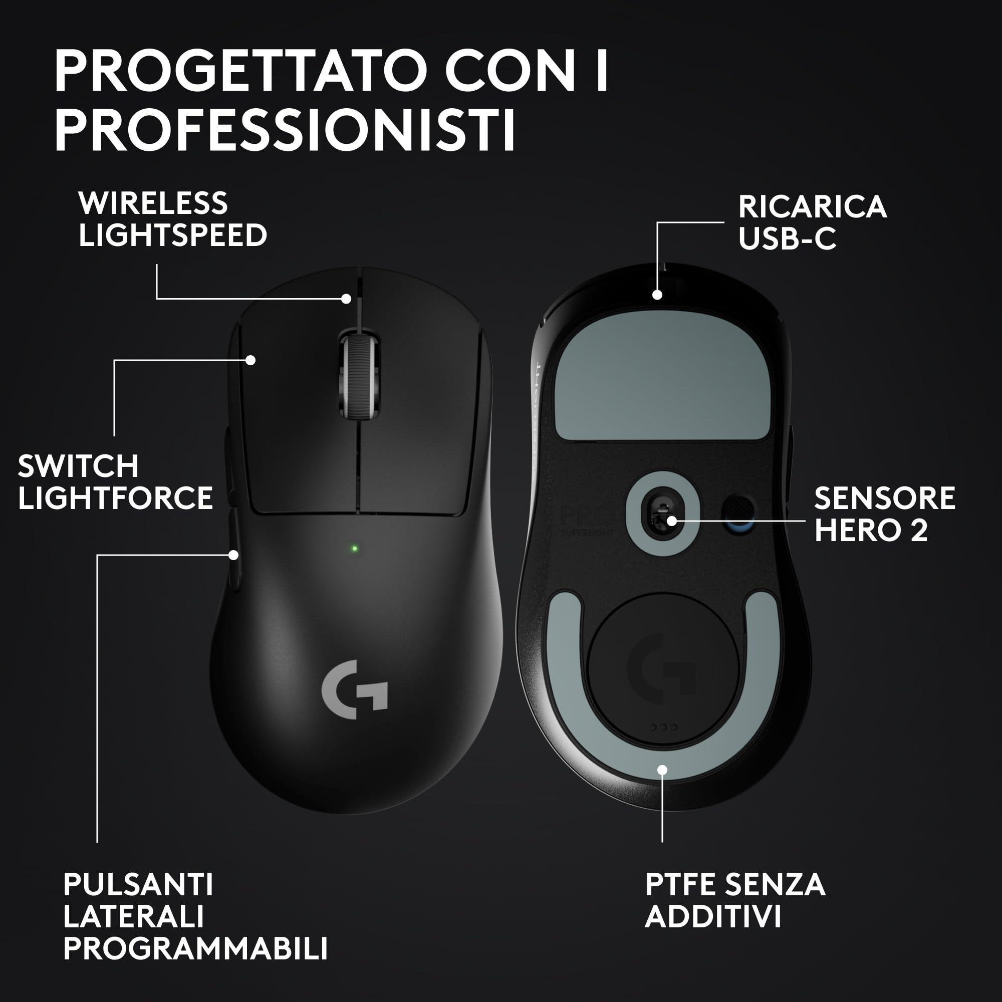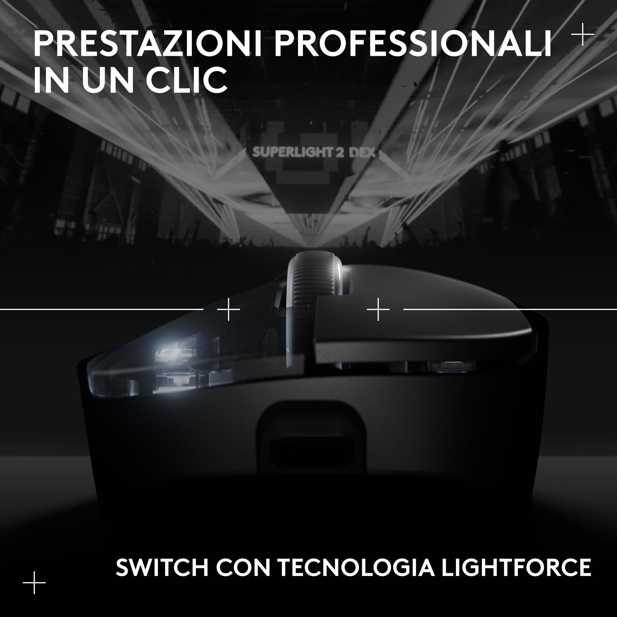 - Progettato con i professionisti, creato per vincere: progettato insieme ai migliori atleti al mondo negli e-sport, il mouse da gaming wireless PRO X SUPERLIGHT 2 DEX ti aiuta a dare il massimo e a esprimere il tuo potenziale