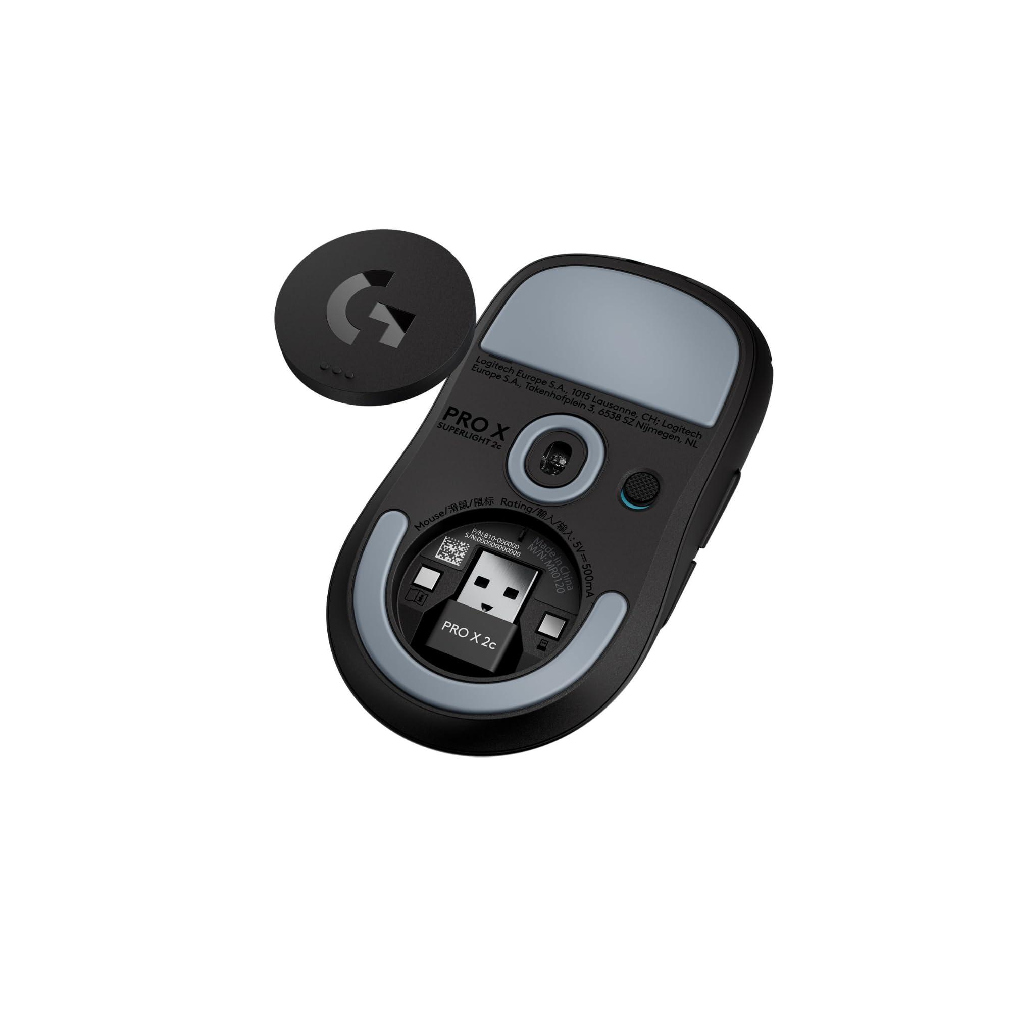 Logitech G PRO X SUPERLIGHT 2c LIGHTSPEED mouse gaming wireless, Versione Est Europa, aggiornamento 8K, leggero, 60g, HERO 2, 888 IPS, 44K DPI, 5 pulsanti programmabili, USB-C, PC e Mac - Nero