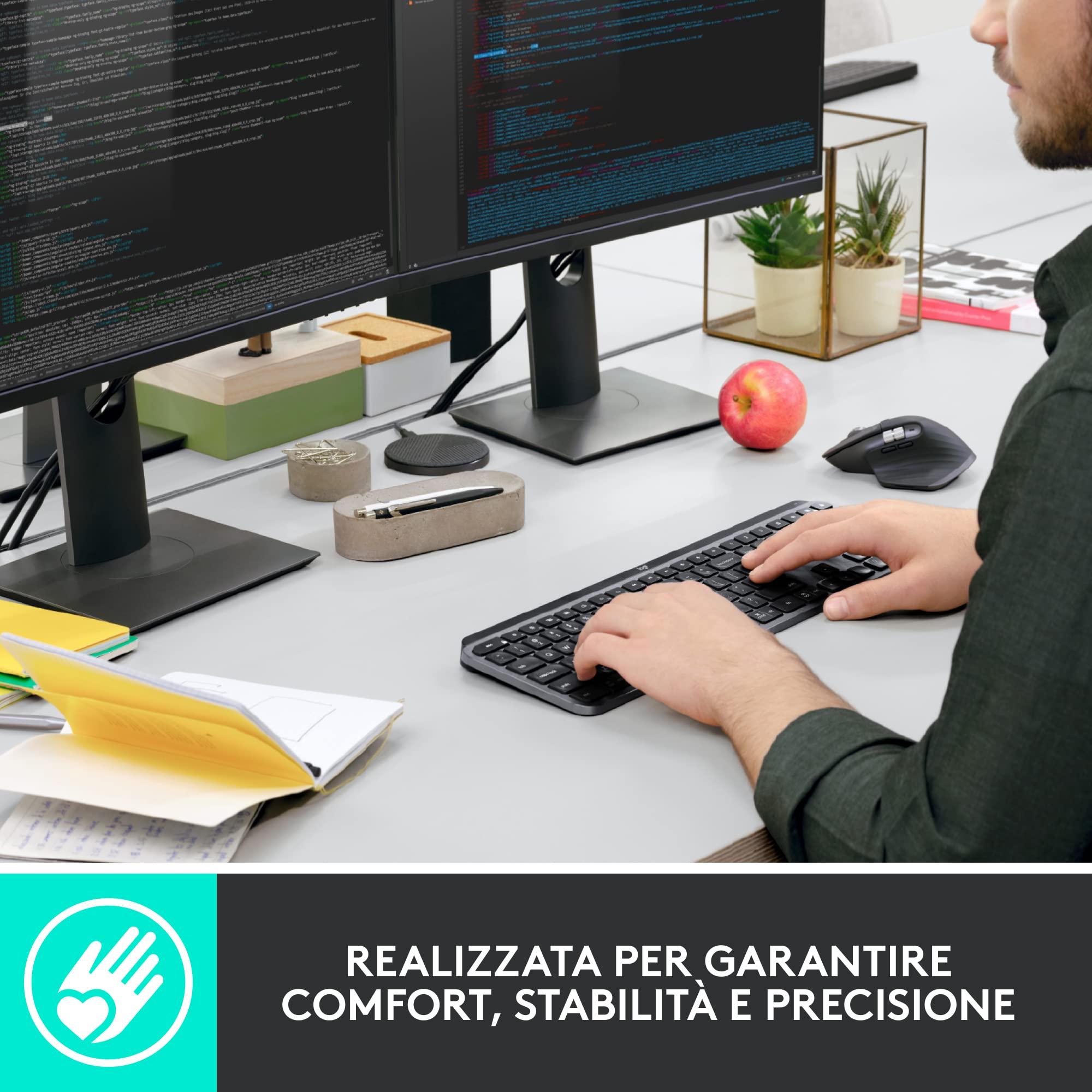 Logitech MX Keys Advanced for Business - Tastiera wireless illuminata, ricevitore USB Logi Bolt, Bluetooth, tasti retroilluminati, ricaricabile, Windows/Mac/Linux, layout QWERTY Italiano - Grafite