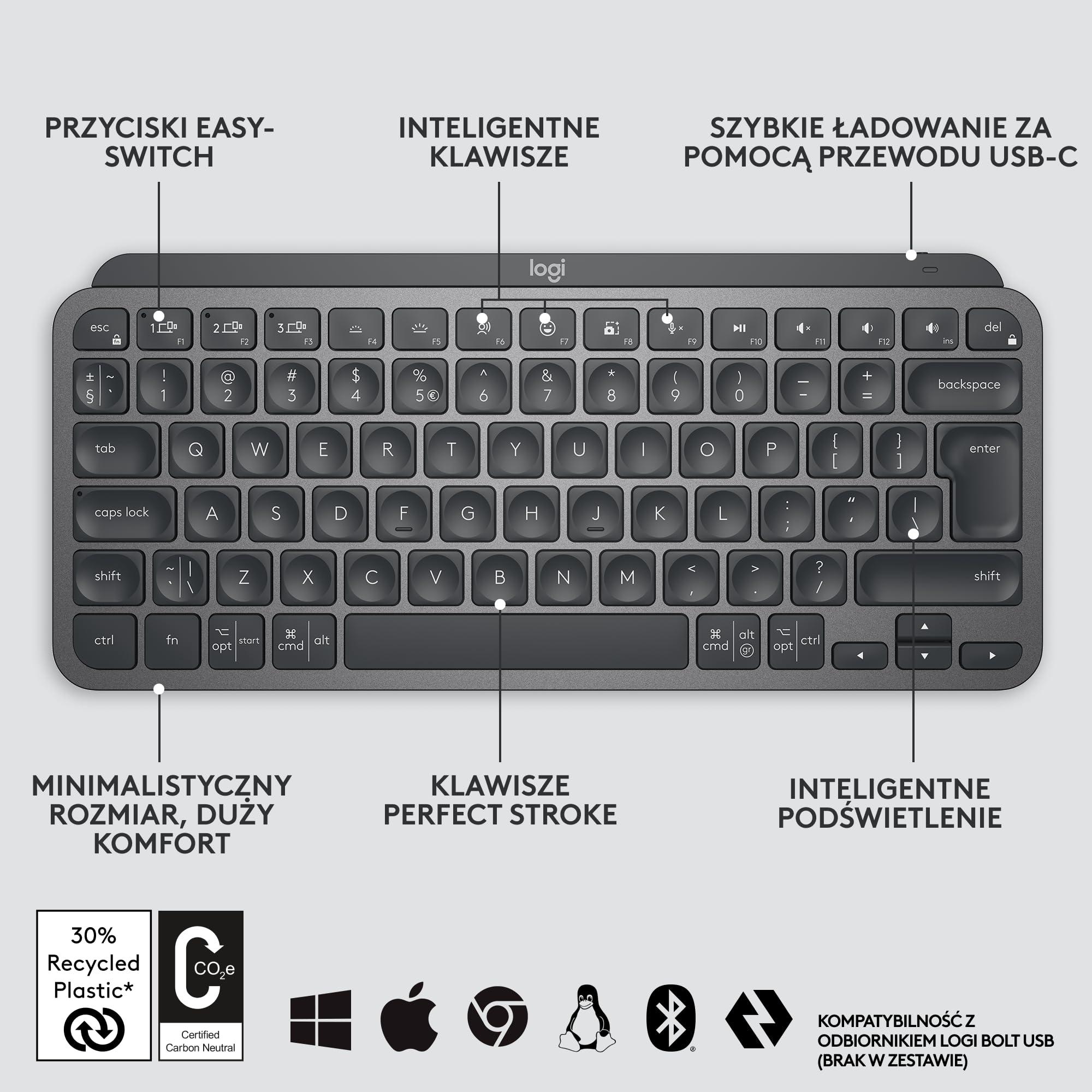 - Compatibile con più dispositivi e sistemi operativi: associala tramite ricevitore USB Logi Bolt o Bluetooth Low Energy a tre dispositivi e passa facilmente dall'uno all'altro premendo un pulsante