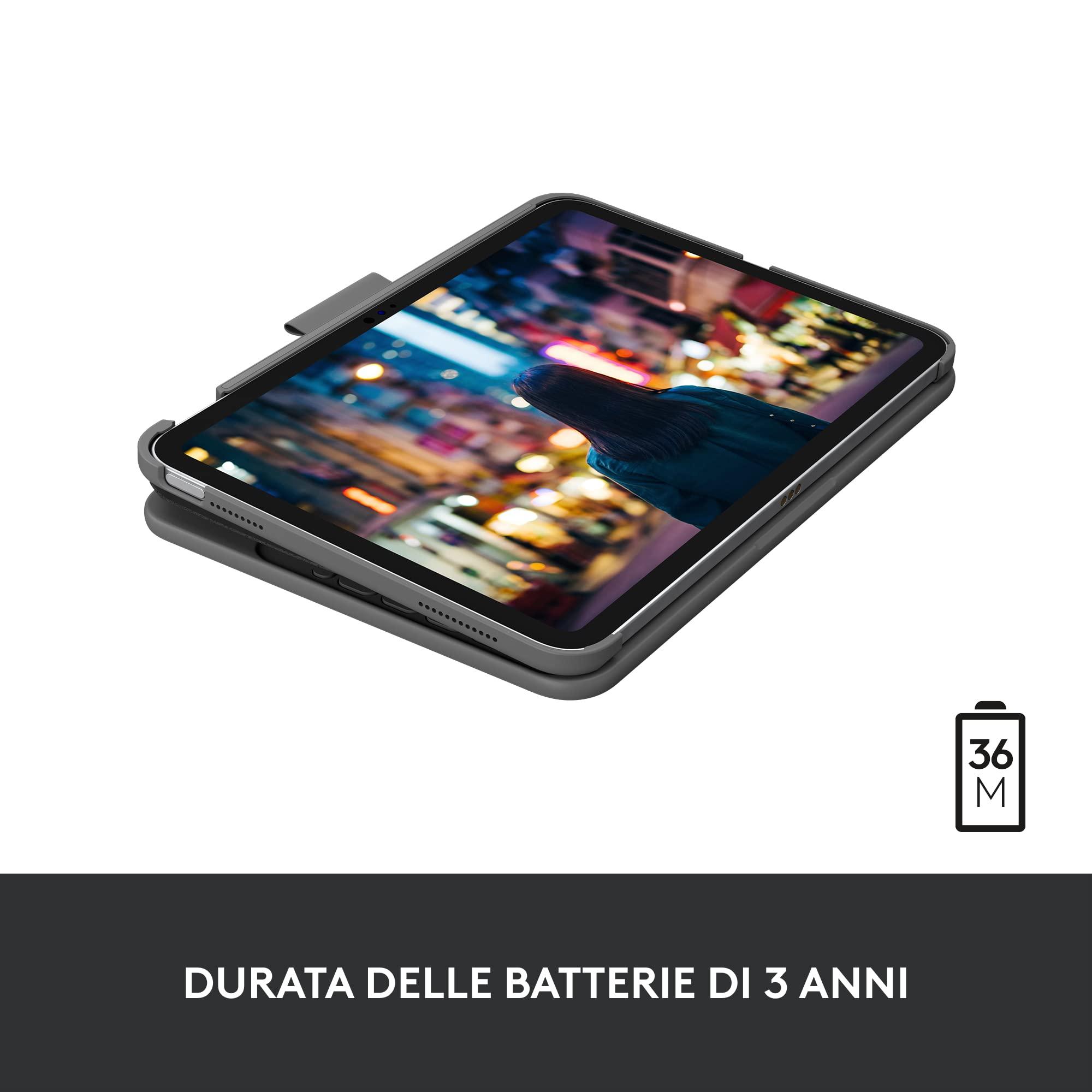 Logitech Slim Folio, custodia con tastiera per iPad (10a generazione e A16) con tastiera wireless Bluetooth integrata, Layout Italiano QWERTY - Grigio