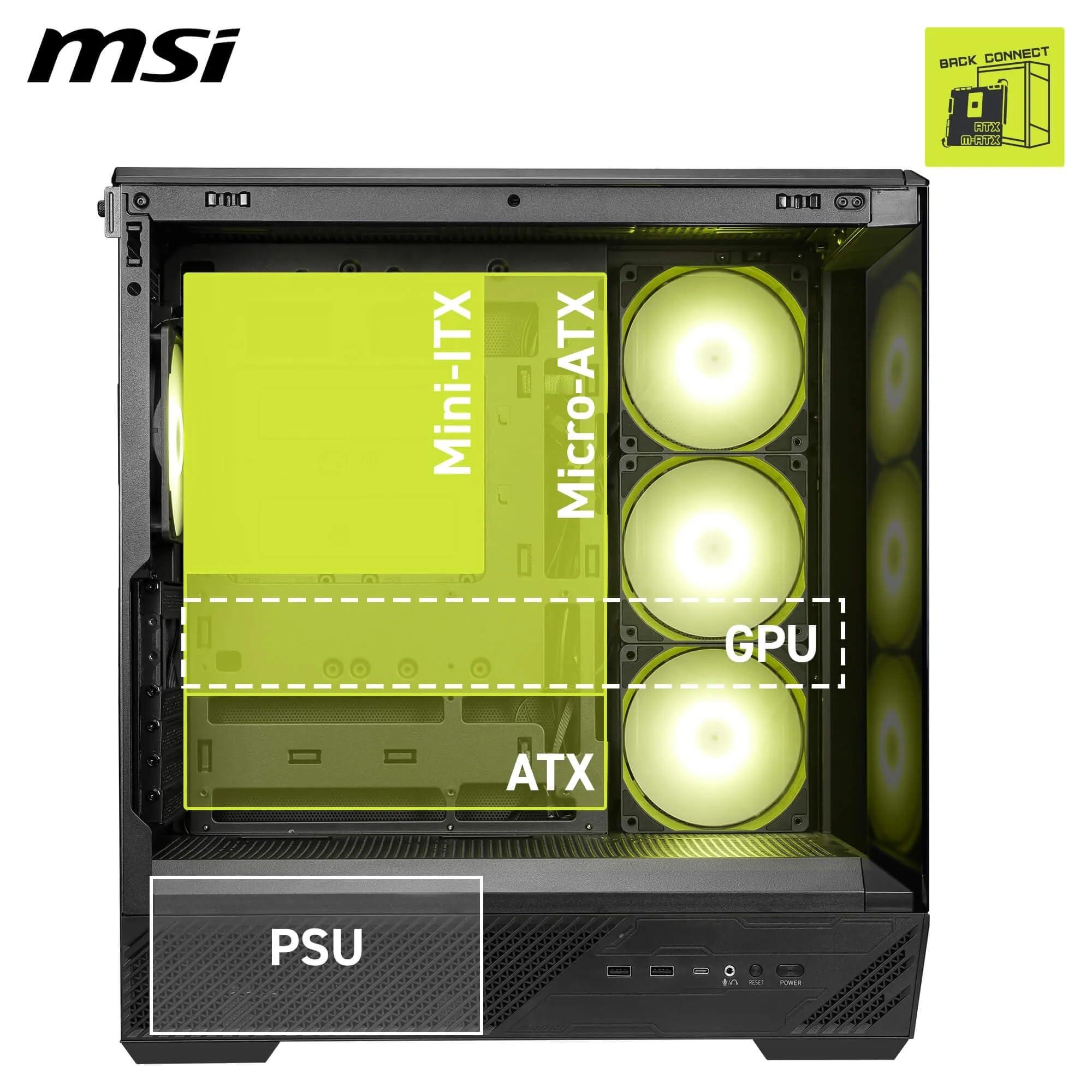 - Supporto scheda madre: MAG PANO 130R PZ è un case mid-tower che supporta schede madri ATX, Micro-ATX, Mini-ITX e Back-connect ATX, Micro-ATX.
