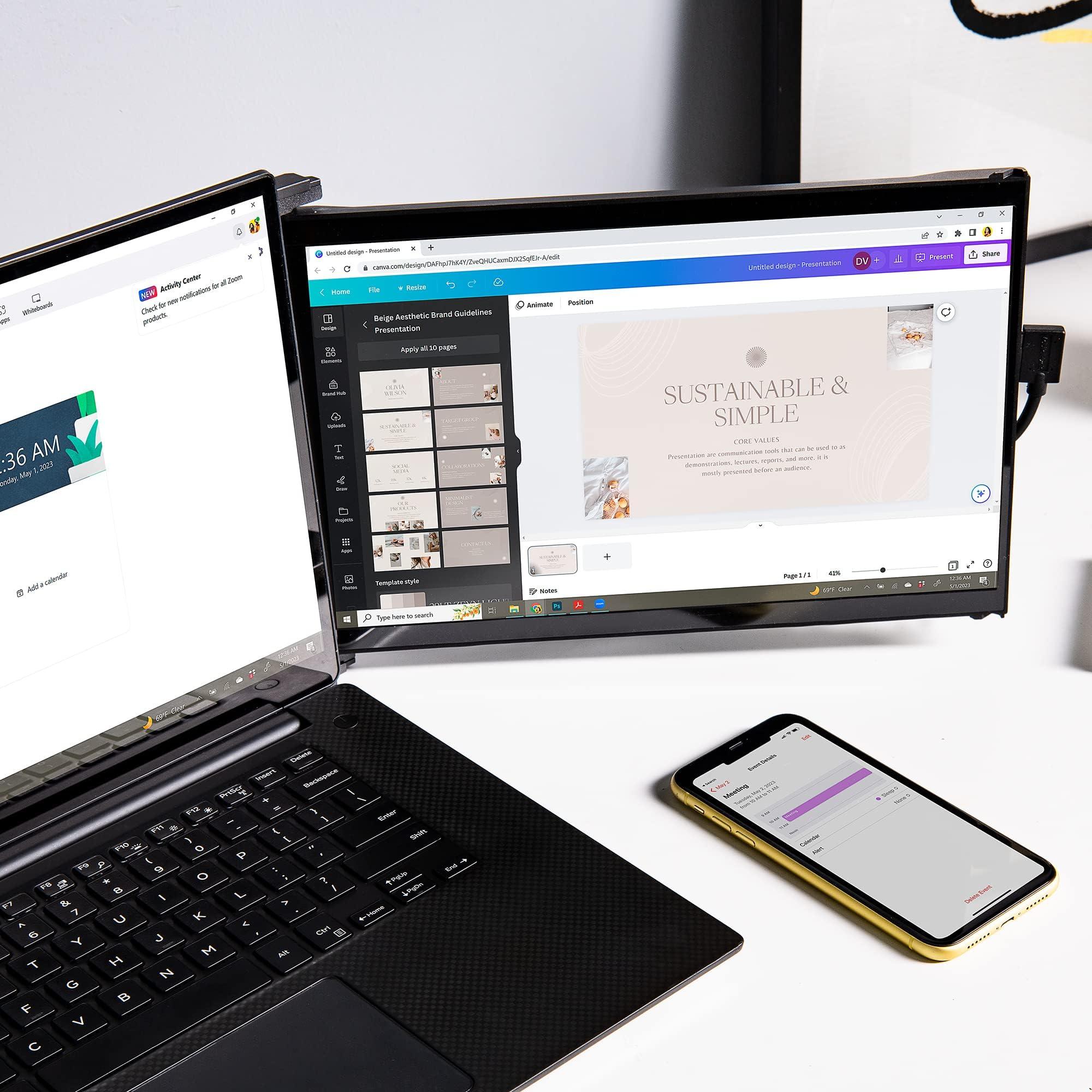 Mobile Pixels Duex Max DS 14,1” Monitor Portatile FHD 1080p, USB-C/HDMI, Per Laptop 14–17”, Compatibile con macOS/Windows/Android/Switch (Nero)
