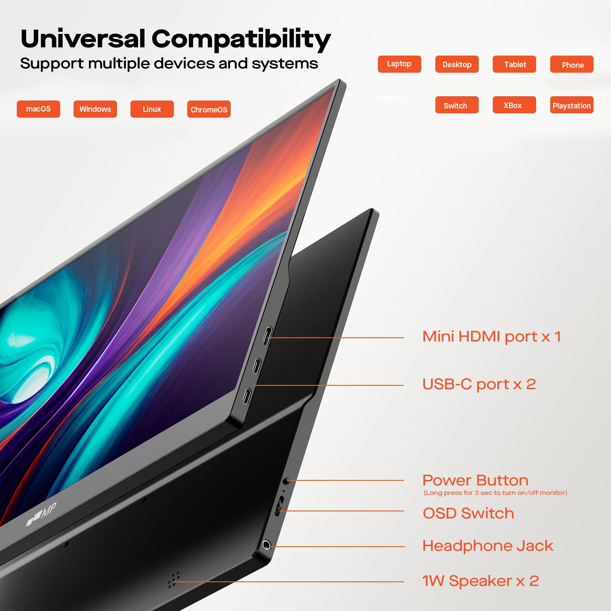 - Secondo monitor esterno per lavoro e gioco: questo monitor portatile funge da secondo schermo per il tuo laptop, puoi tenere aperte più applicazioni fianco a fianco, avere più spazio per modificare documenti o foto e passare facilmente da un'attività all'altra