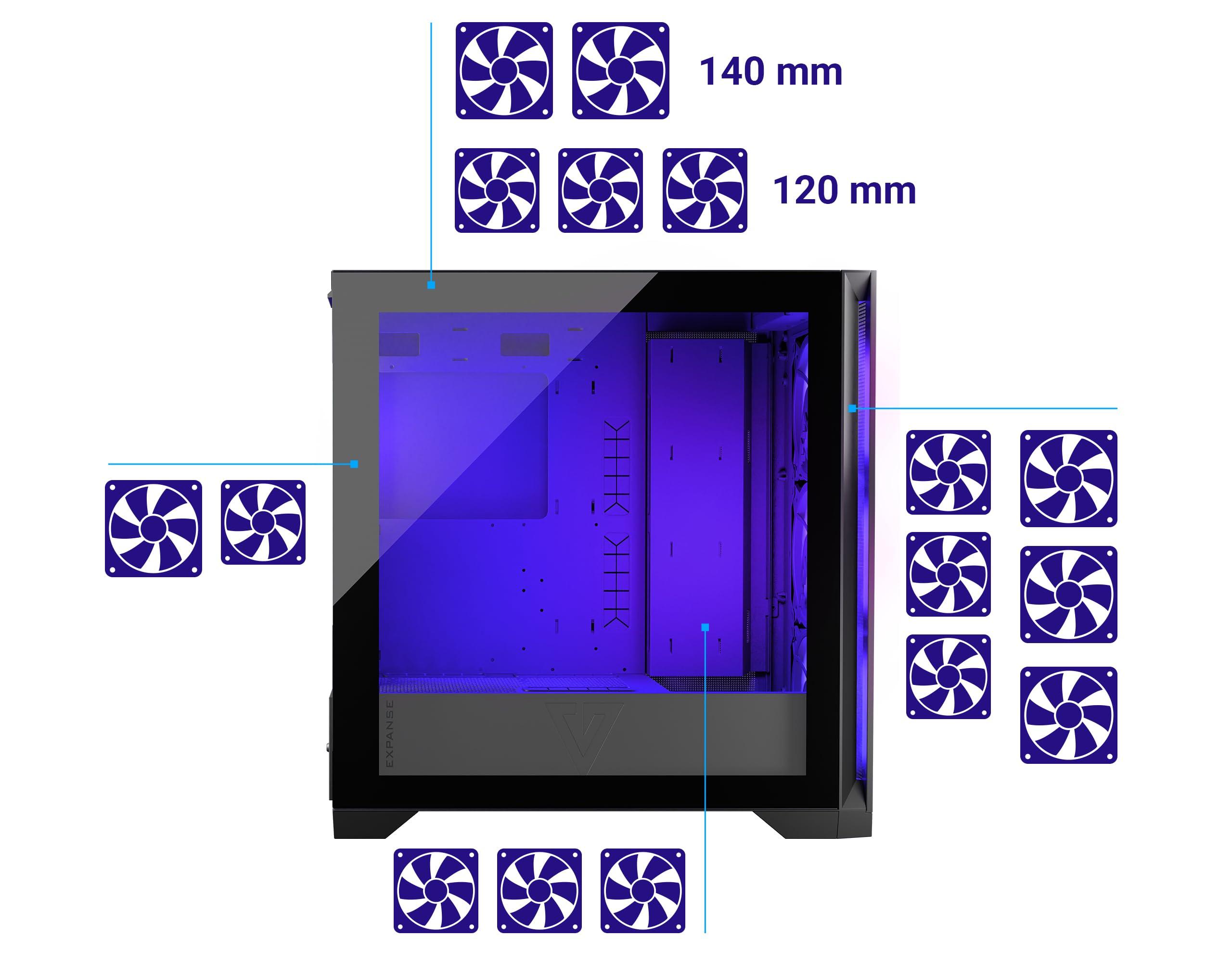 MODECOM Case Vulcano Expanse S APEX ARGB MIDI Black, Nero