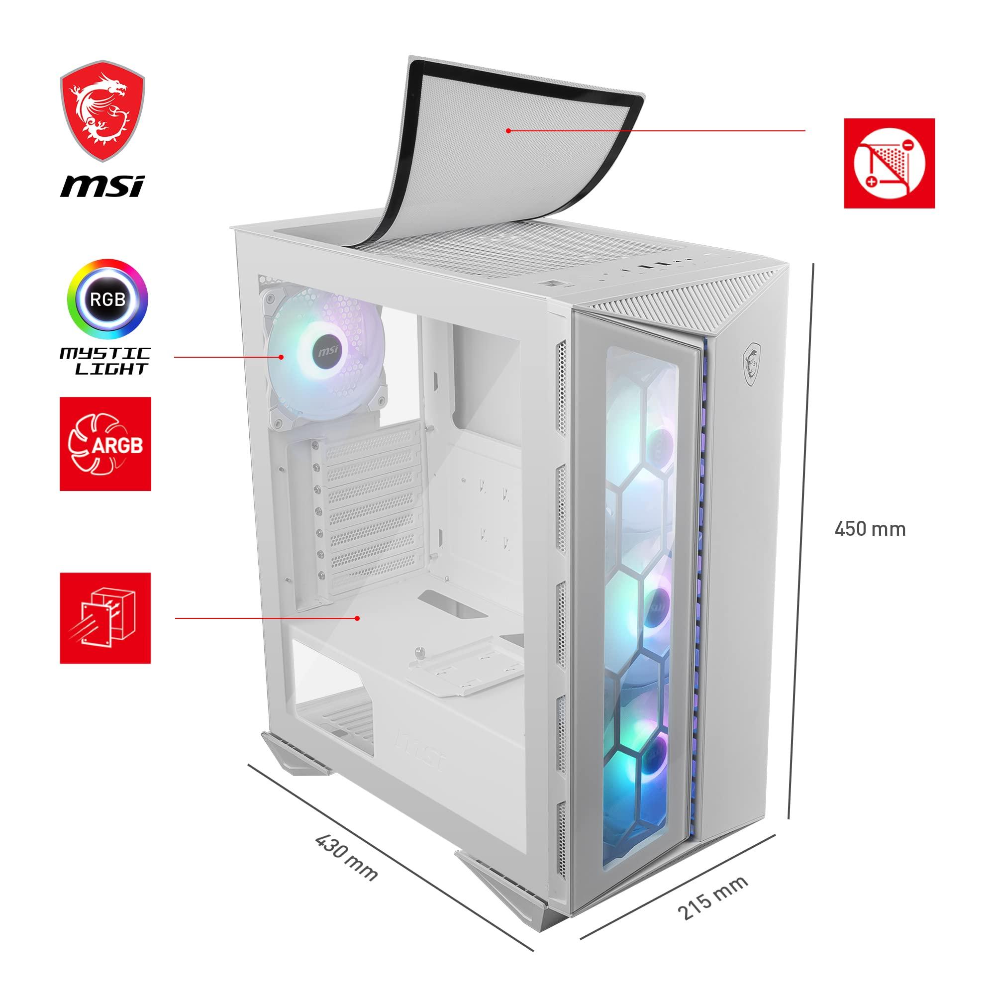 - L'illuminazione ARGB dell'MPG GUNGNIR 110R WHITE è completamente supportata da MSI Mystic Light