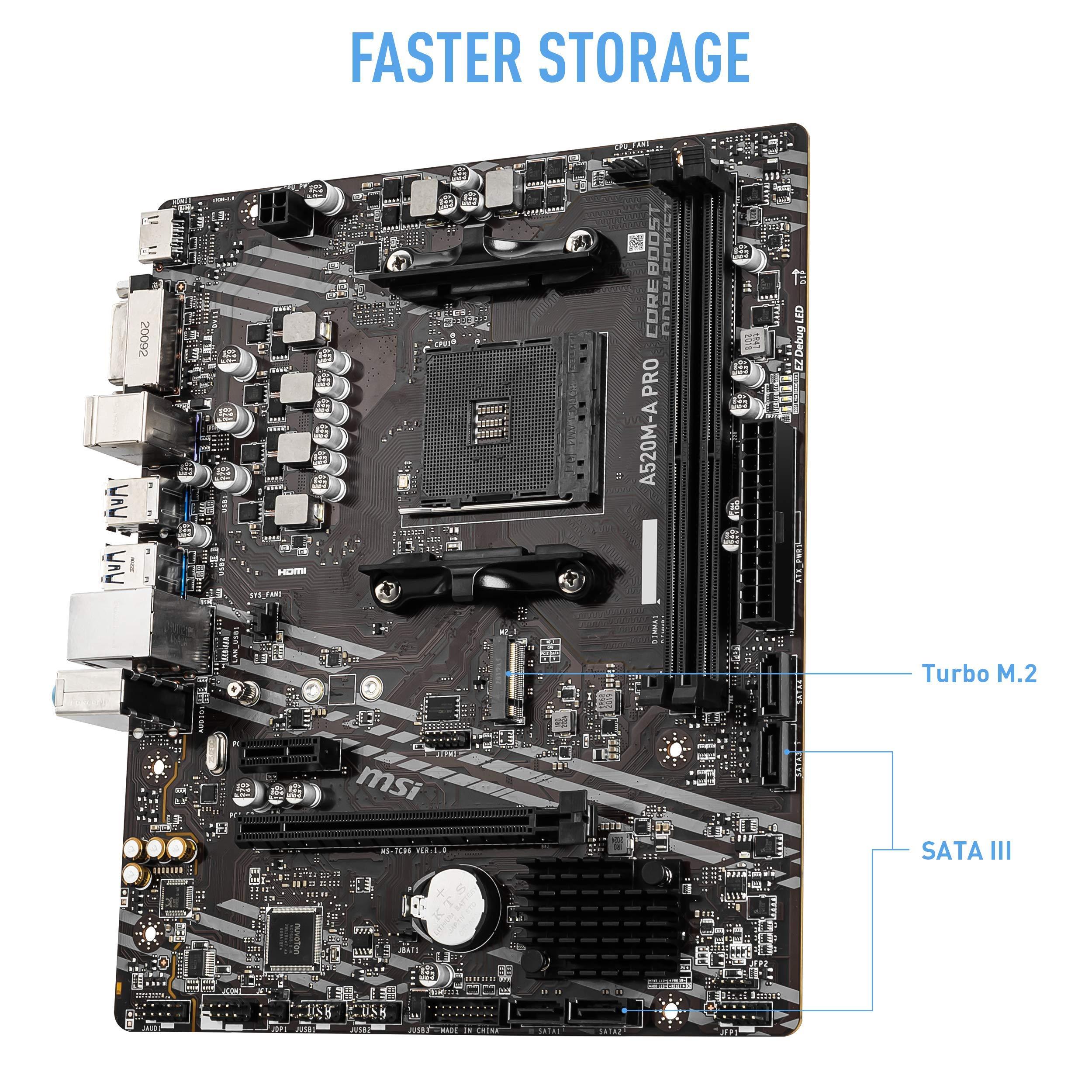 MSI A520M-A PRO Scheda Madre mATX - Supporta AMD Ryzen 3rd Gen Processors, AM4, DDR4 Boost (4600MHz/OC), 1 x PCIe 3.0 x1, 1 x M.2 Gen3 x4, Gigabit LAN