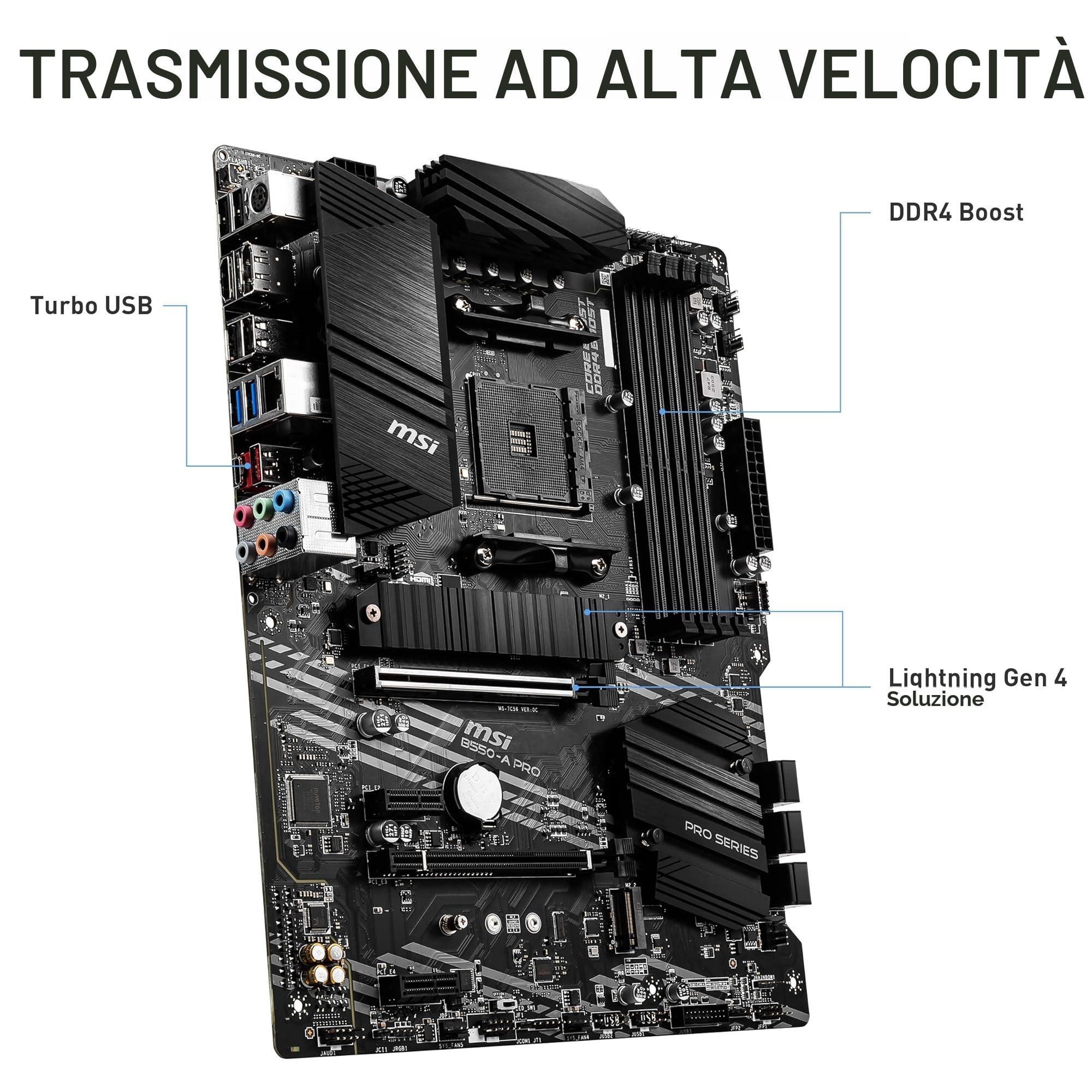 MSI B550-A PRO Scheda Madre ATX, Supporta AMD Ryzen 3° Gen, AM4, DDR4 Boost (4400MHz/OC), 1 x PCIe 4.0/3.0 x16, 1 x PCIe 3.0/3.0 x16, 1 x M.2 Gen4 x4, 1 x M.2 Gen3 x4, HDMI, Gigabit LAN