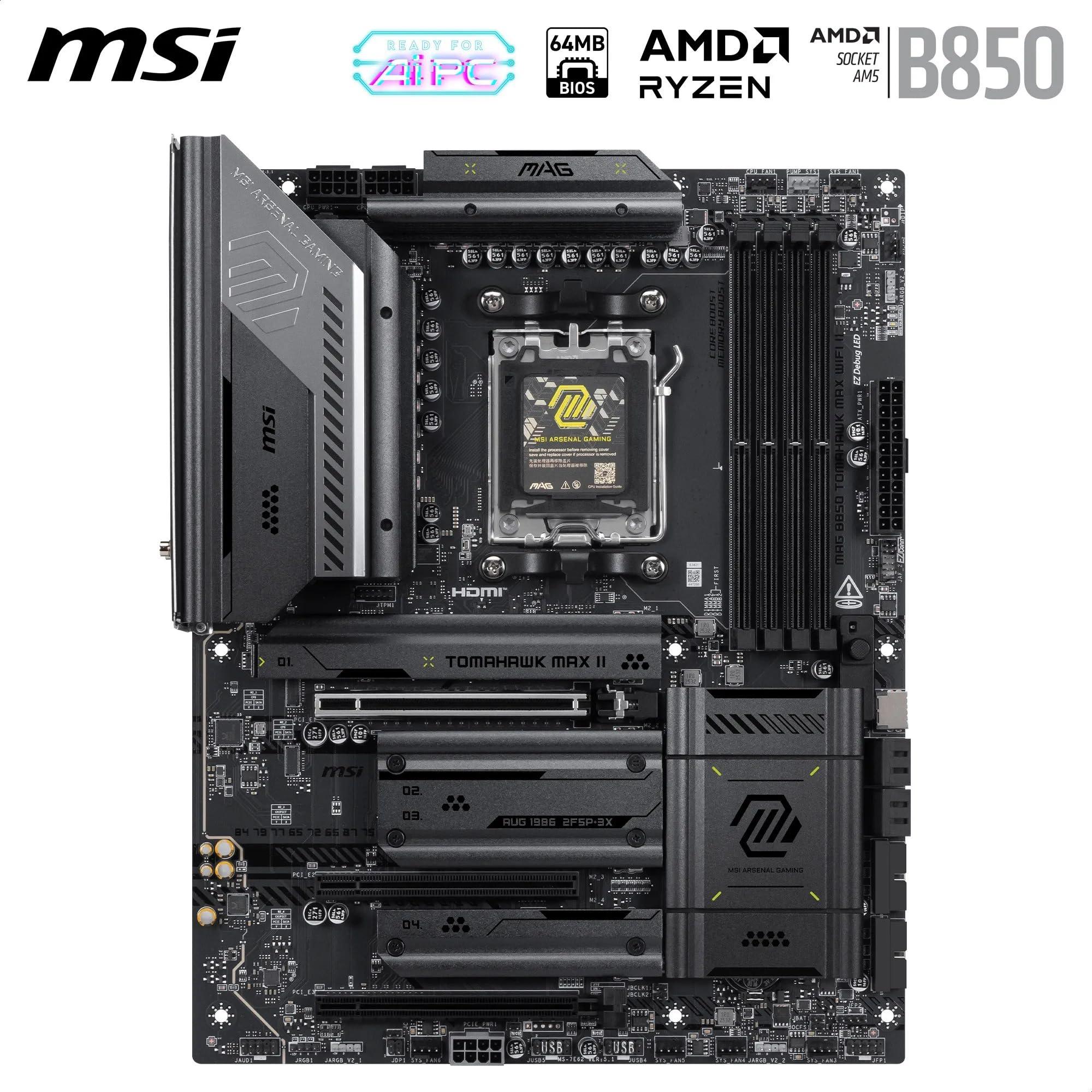 MSI MAG B850 TOMAHAWK MAX WIFI II - Supporta processori AMD Ryzen 9000/8000/7000, AM5-80A SPS VRM, DDR5 Memory Boost (fino a 8400+ MT/s OC), PCIe 5.0 x16, M.2 Gen5, Wi-Fi 7, 5G L