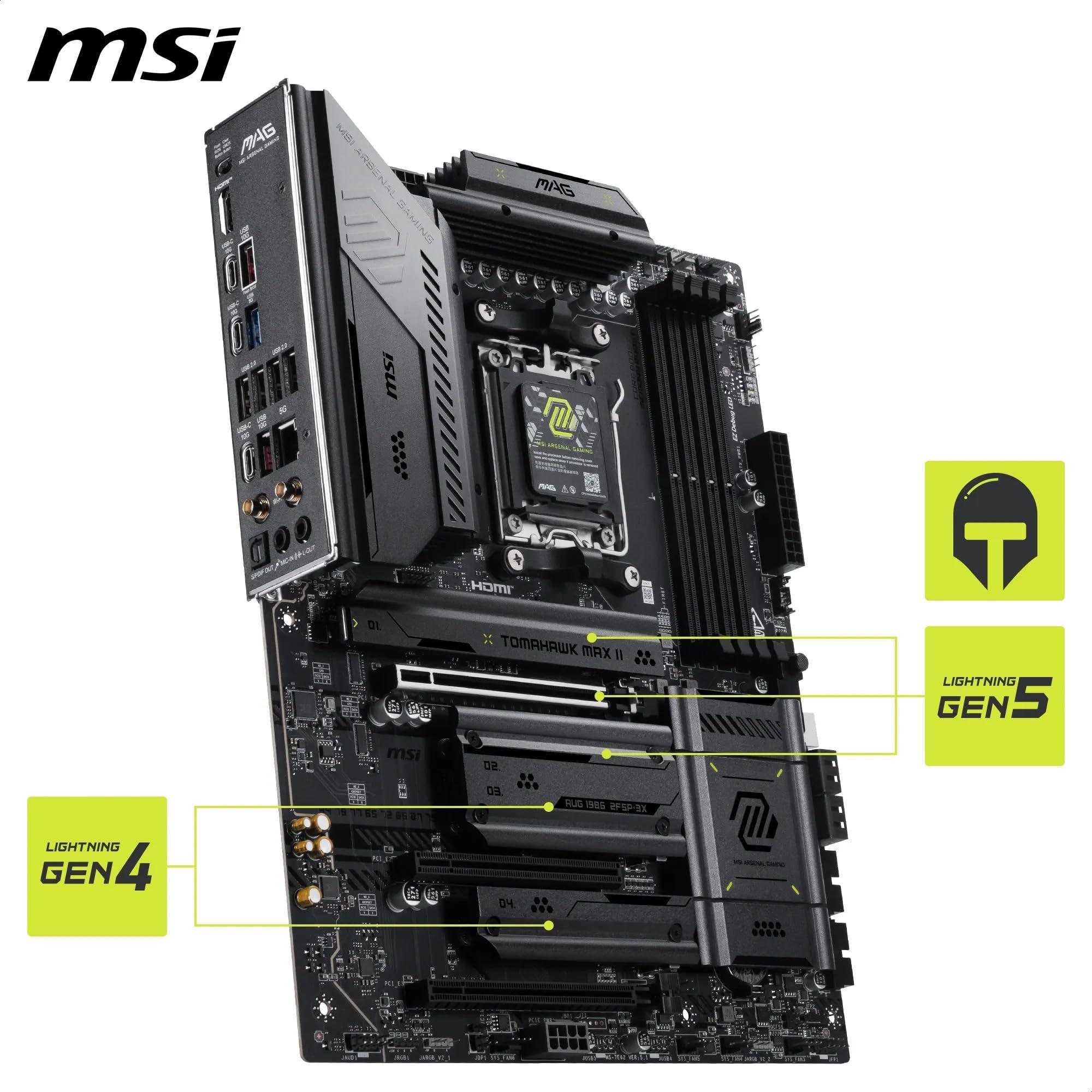 - Ultra potente: supporta i più recenti processori Ryzen 9000 ad alte prestazioni. Il MAG B850 TOMAHAWK MAX WIFI II utilizza un sistema di alimentazione a 14 Duet Rail (80A, SPS) VRM per il chipset AMD B850 (AM5, Ryzen 9000/8000/) 7000). con architettura Core Boost