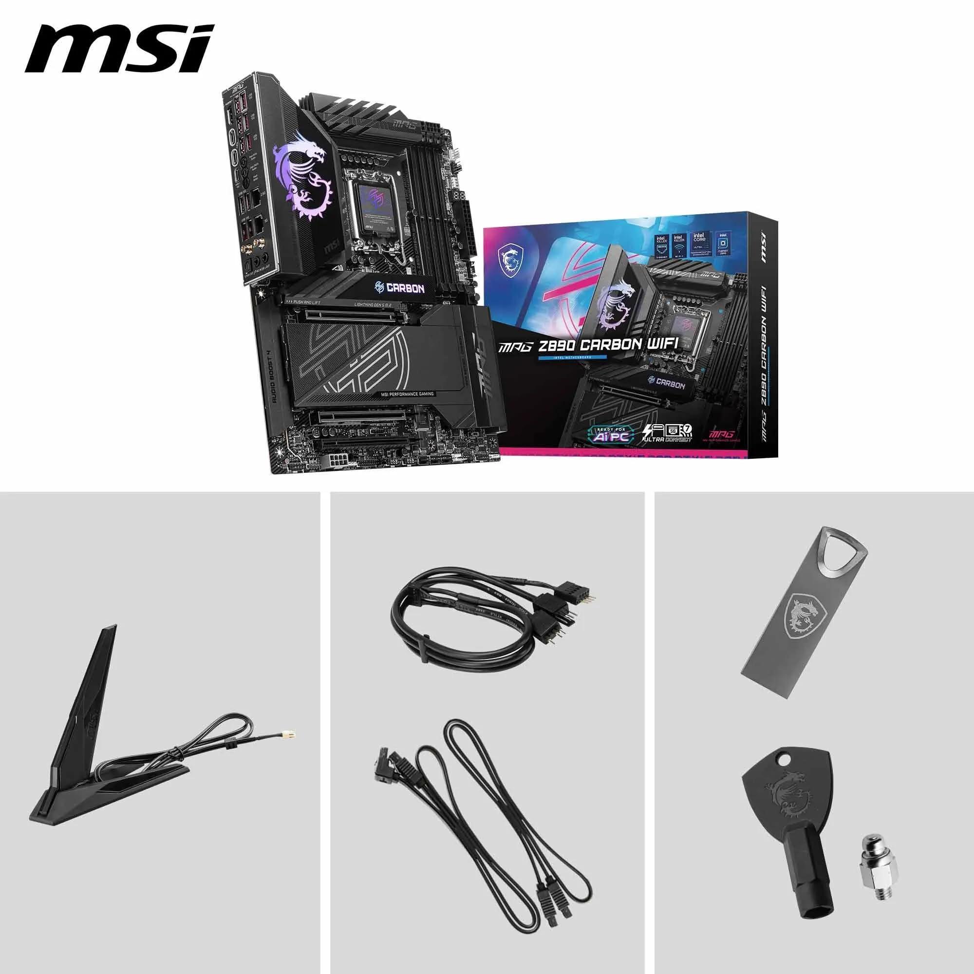 MSI MPG Z890 CARBON WIFI Scheda Madre, ATX – Supporta Intel Core Ultra (Serie 2), LGA 1851 – VRM 110A SPS, DDR5 9200+ MT/s (OC), PCIe 5.0 x16, M.2 Gen5, Wi-Fi 7, 5G LAN