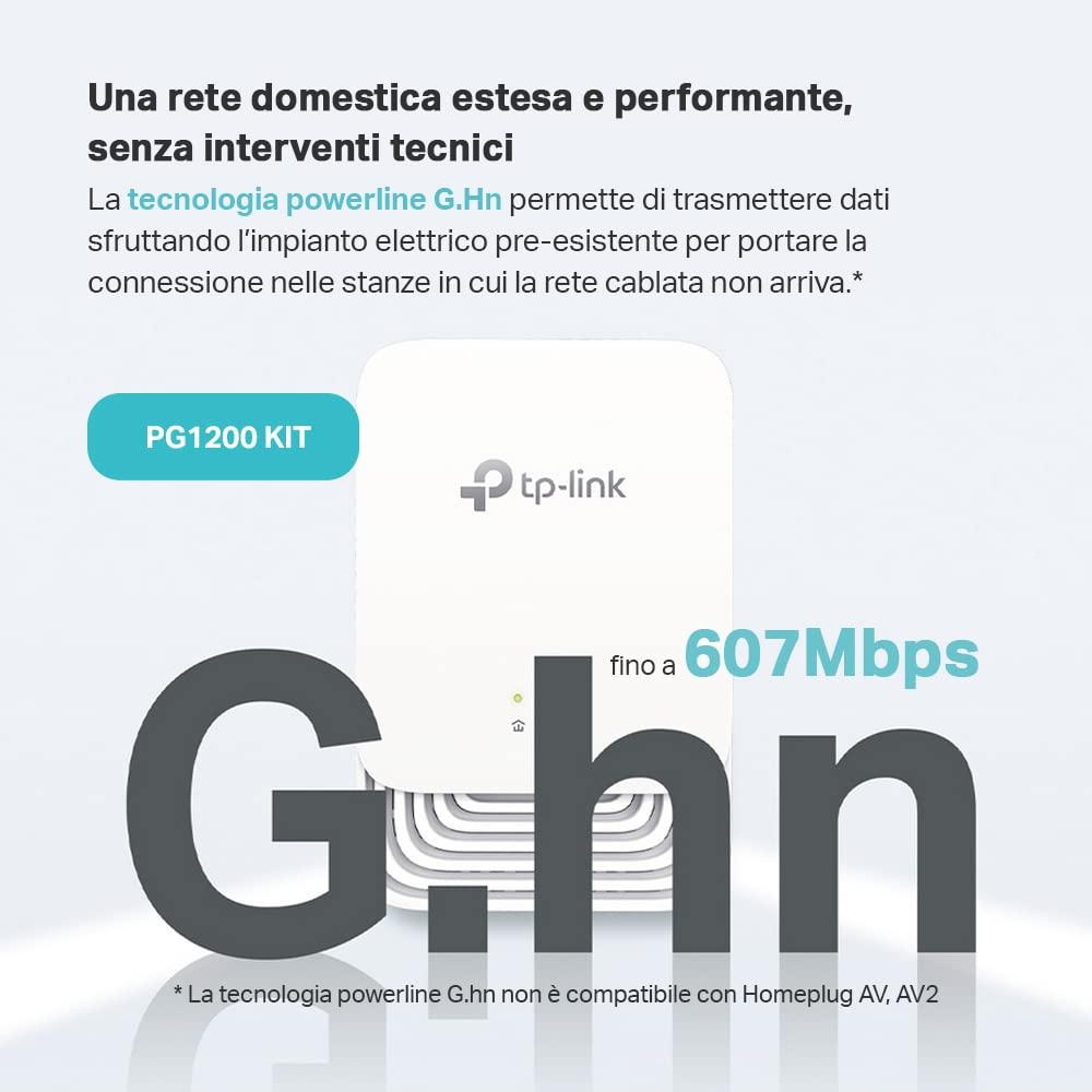 [Nuovo] TP-Link PG1200 KIT Powerline G.hn1200, G.hn Wave2 SISO, 1 × Porta Gigabit, Modalità di Risparmio Energetico, Plug & Play, Powerline di Nuova Generazione Più Affidabile