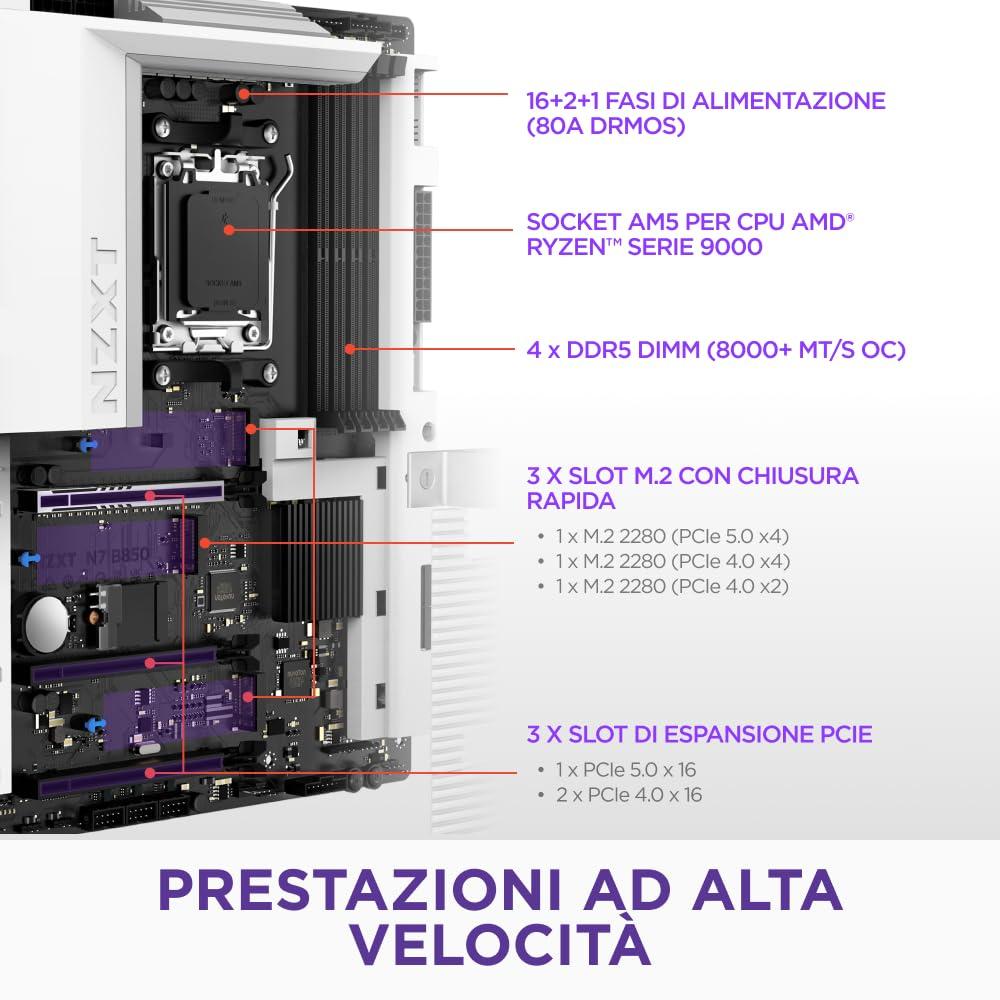 - SOCKET AMD AM5 — Compatibile con processori desktop AMD Ryzen 9000, 8000 e 7000.