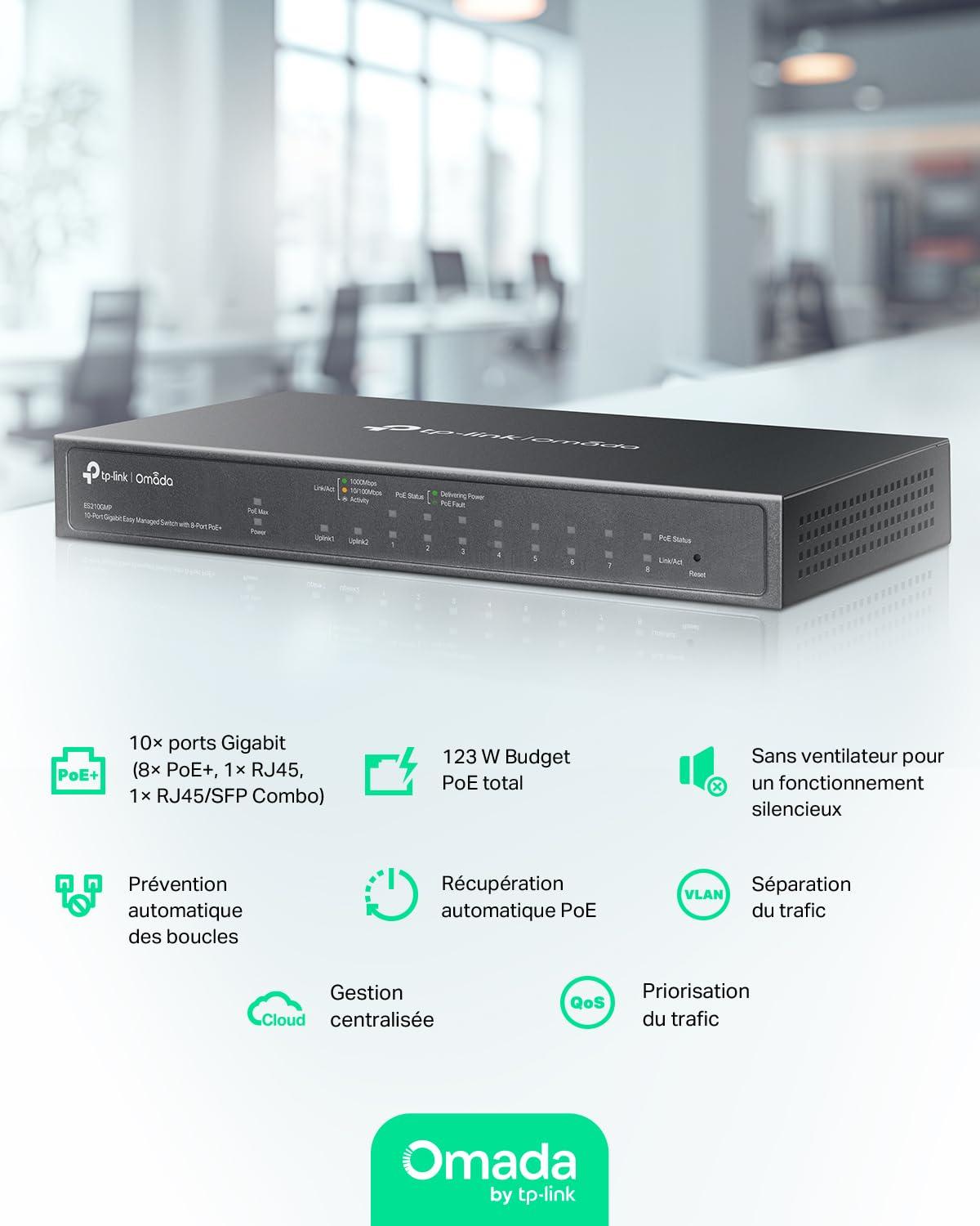 Omada Switch Easy Managed 10 Porte Gigabit con 8 porte PoE+ - ES210GMP