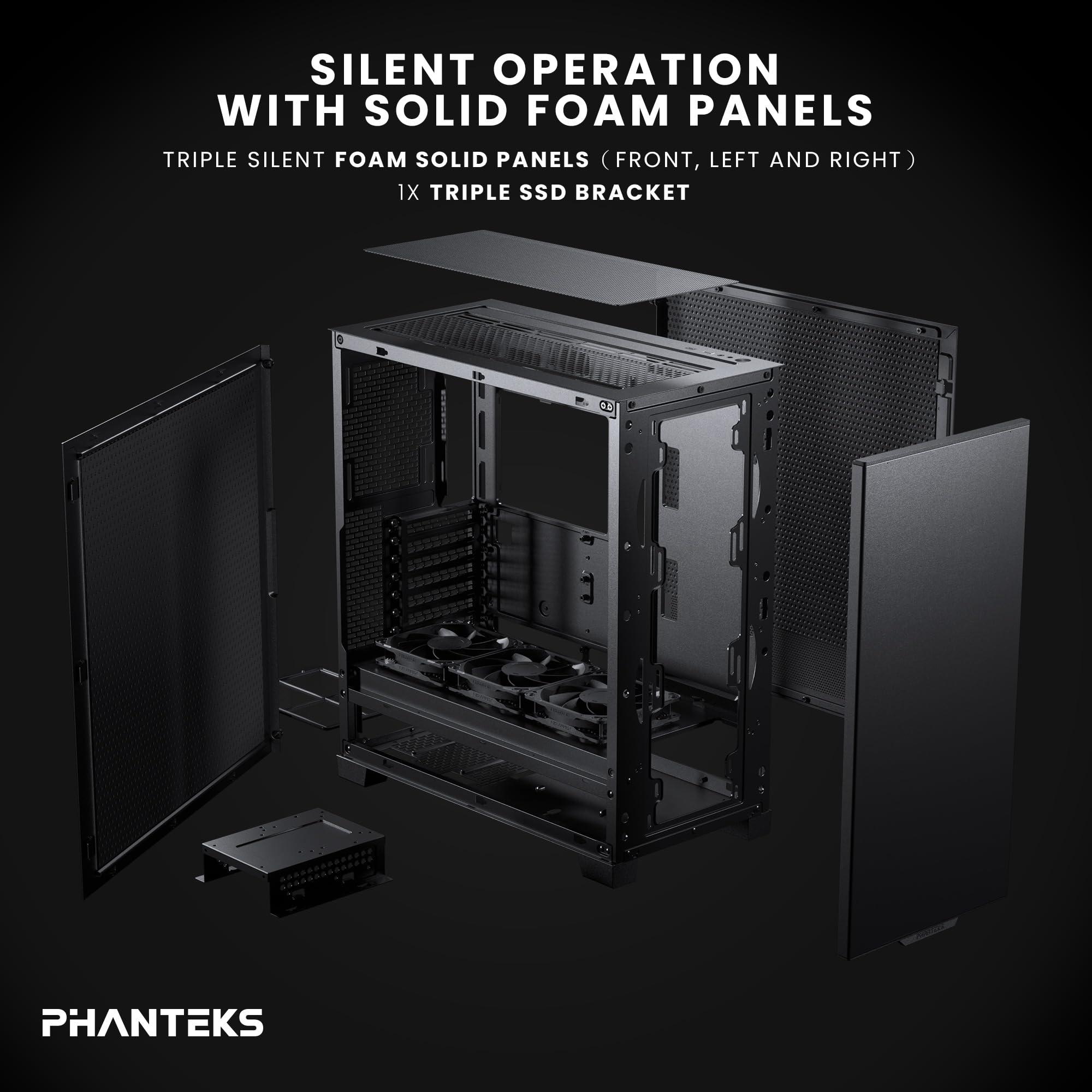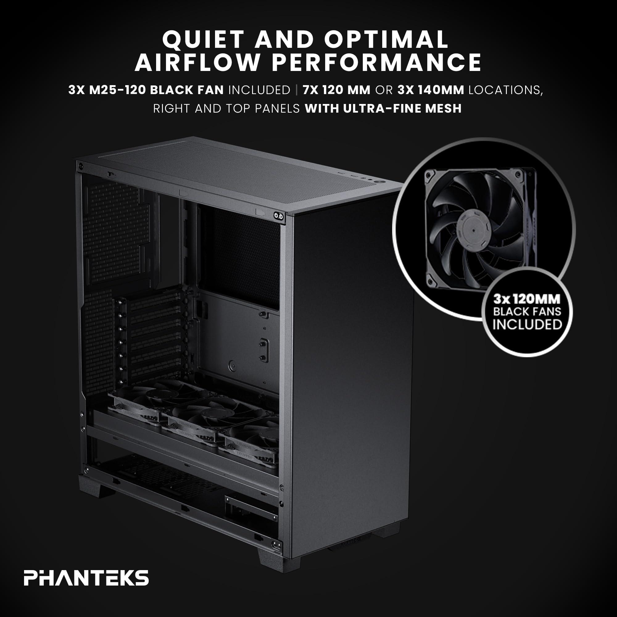 Phanteks XT Pro Silent, telaio da Gioco a metà Torre, 3 Ventole Nere M25-120 Incluso, Pannelli chiusi, USB-C 3.2 Gen2, Custodia Silenziosa, Nero