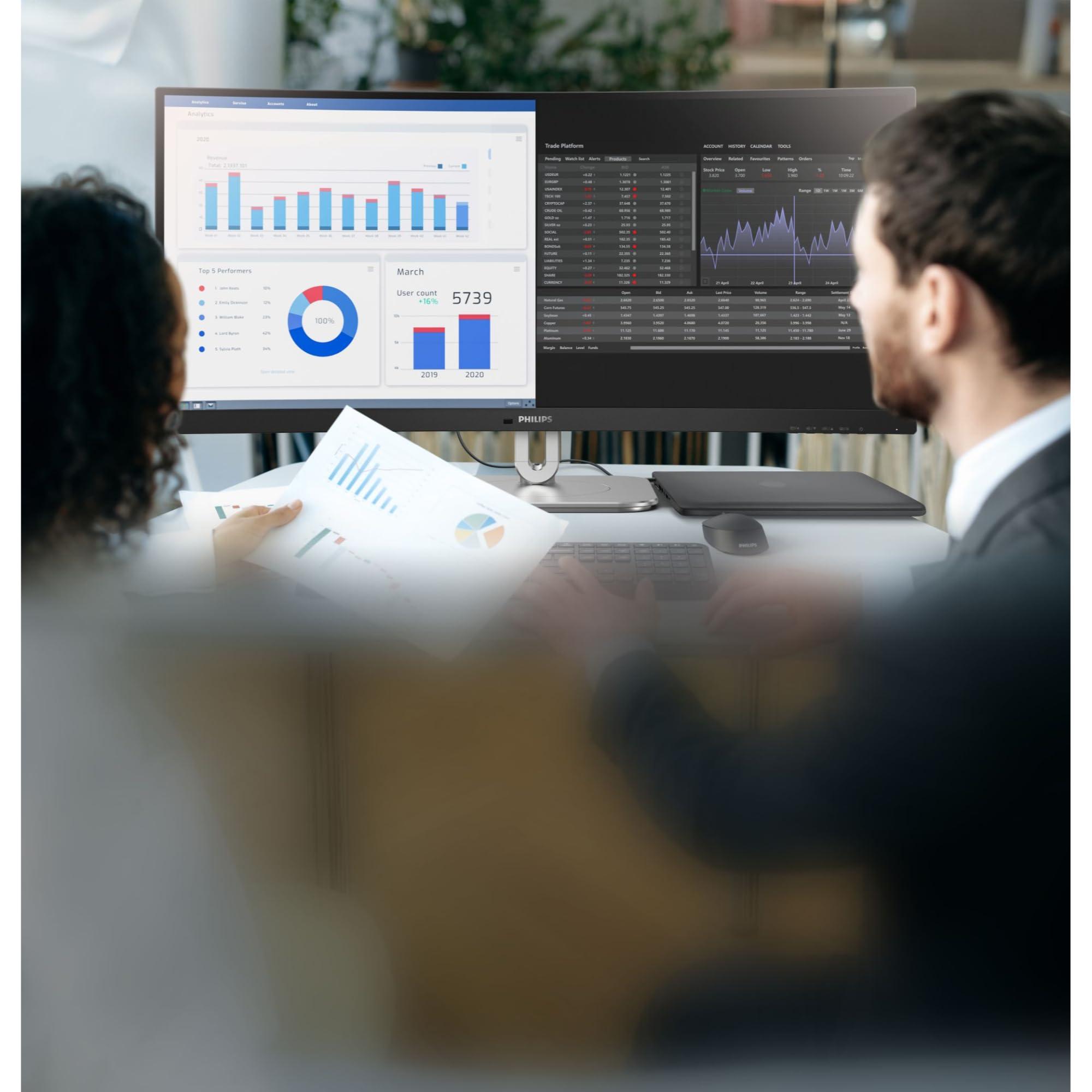 Philips 34B2U5600C - Monitor curvo WQHD da 34 pollici, regolabile in altezza (3440x1440, 120Hz, HDMI, DisplayPort, USB-C (100W PD), RJ45, USB Hub) grigio scuro