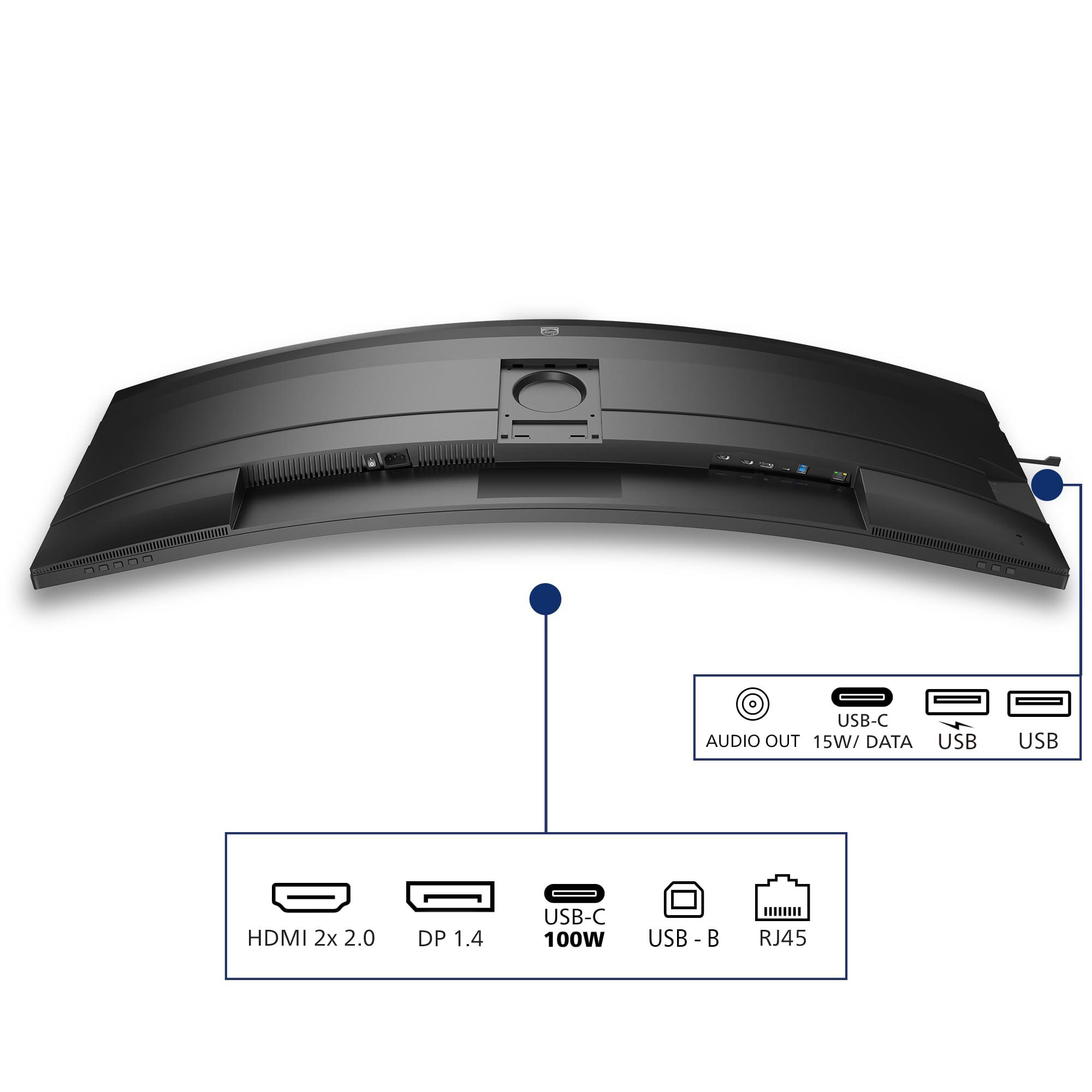 Philips Monitor 49B2U5900C da 48,8" DQHD curvo, 75 Hz, RJ45, VA, 4ms, sincronizzazione adattiva, HDR400, regolazione dell'altezza, altoparlanti, (5120 x 1440 HDMI 2x 2.0 DP USB Hub) grigio scuro