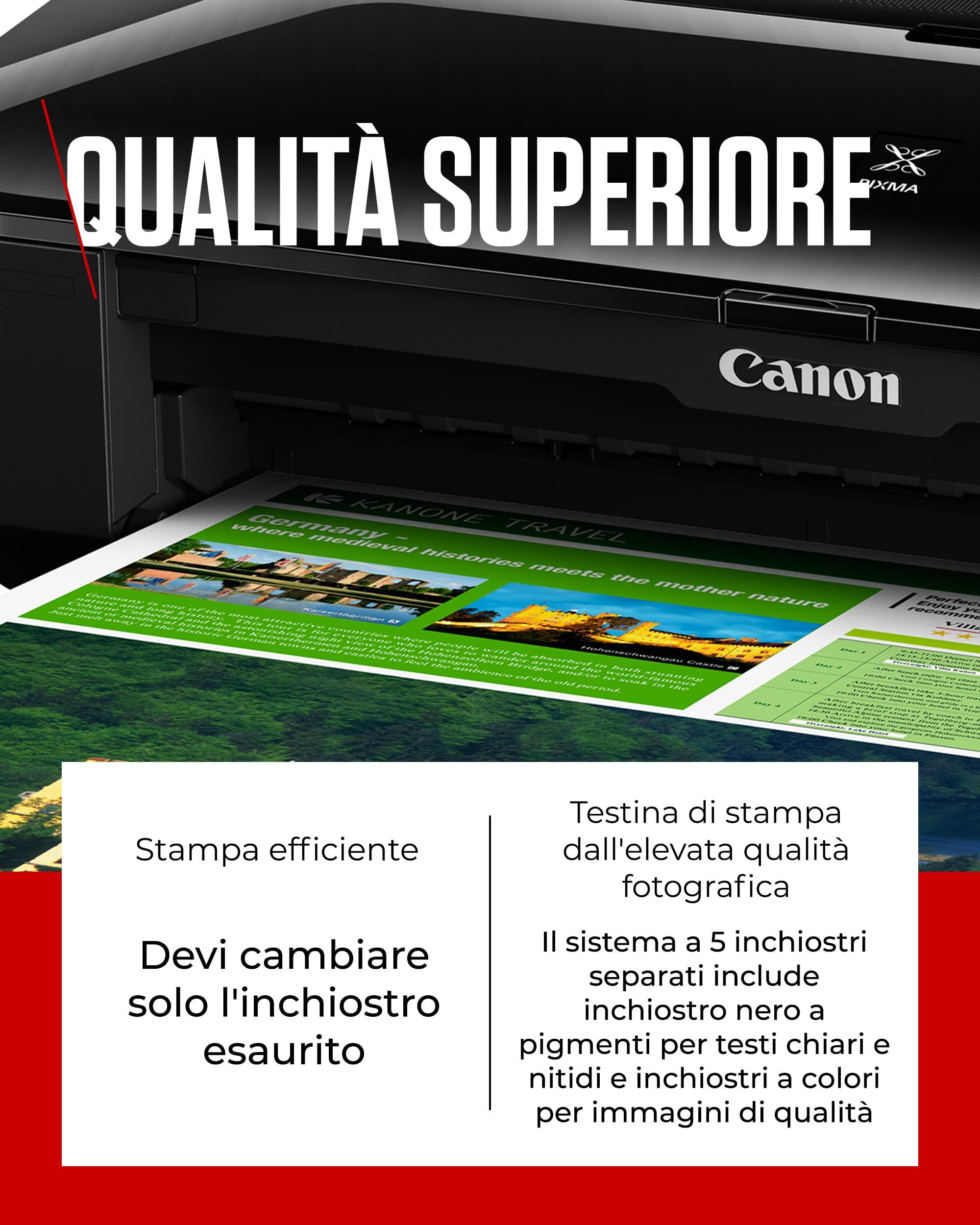 - STAMPA DI QUALITÀ SUPERIORE: 5 inchiostri singoli garantiscono un testo nitido e immagini dai colori vivaci e di qualità. Puoi cambiare un colore alla volta quando si esaurisce, per una stampa più efficiente.