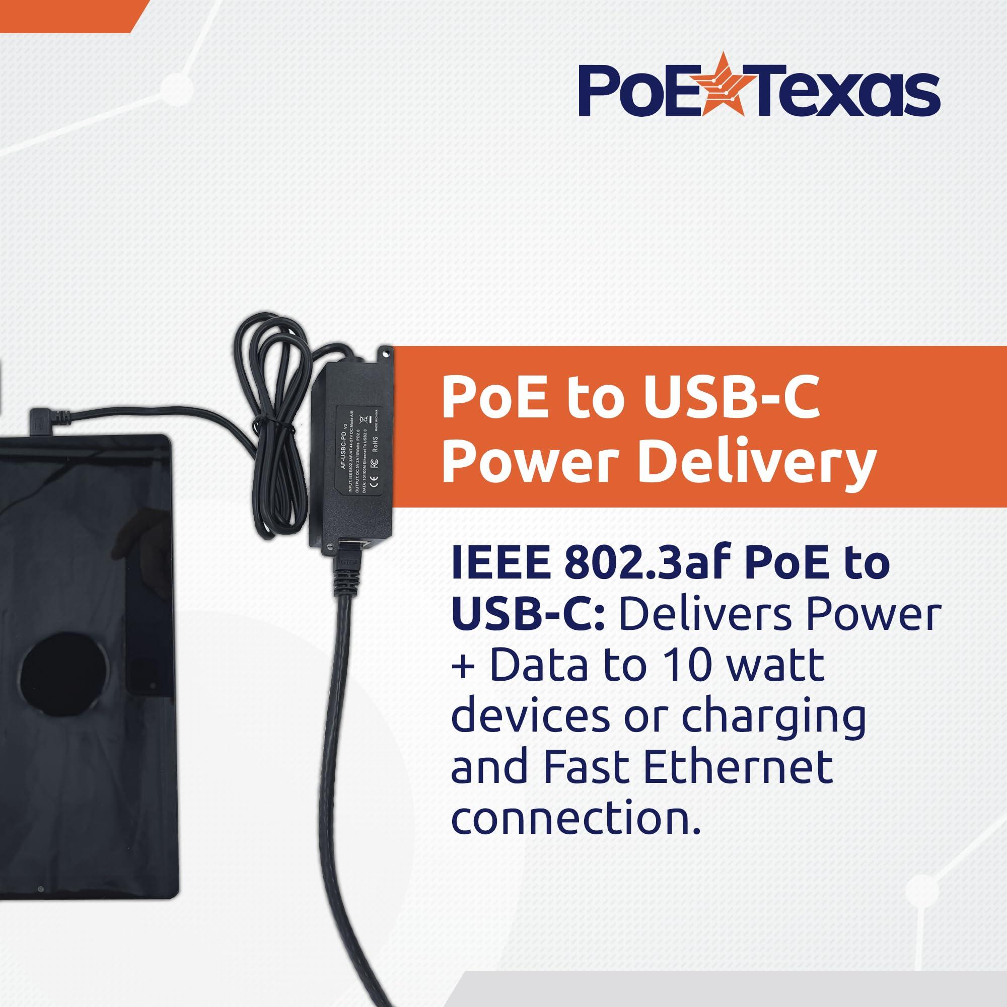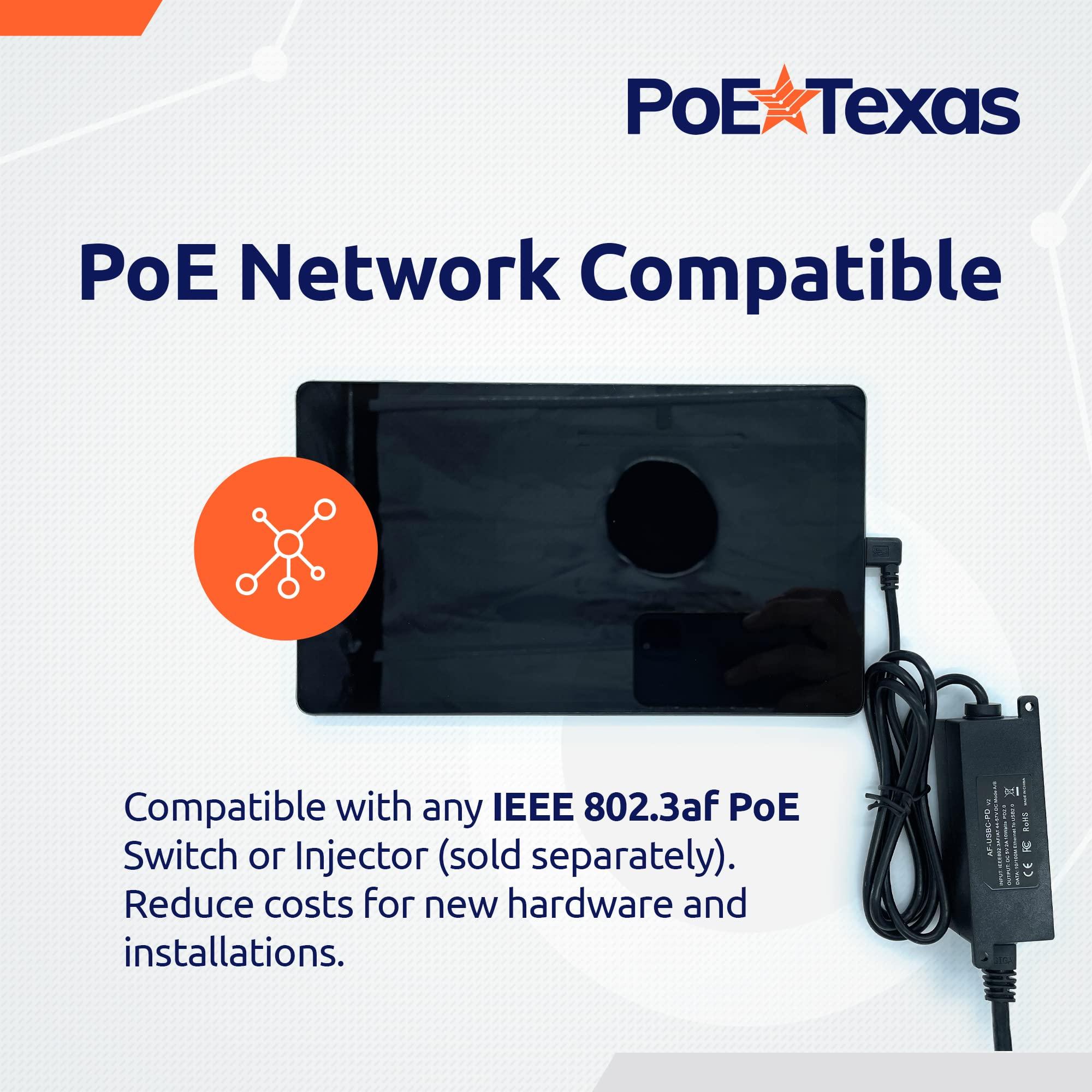 - Che cosa fa questo? Collega alimentazione e dati da PoE a tablet USB-C come iPad Mini, Air, Samsung Tab S7 Lite, Surface Go e Google Pixel. Il cavo USB-C ad angolo retto integrato si adatta a quasi tutti i tablet e funziona con qualsiasi switch PoE 802.3af. Non compatibile con Amazon Echo Hub a causa dei suoi requisiti unici di erogazione di alimentazione, vedere il nostro prodotto AT-HUB.