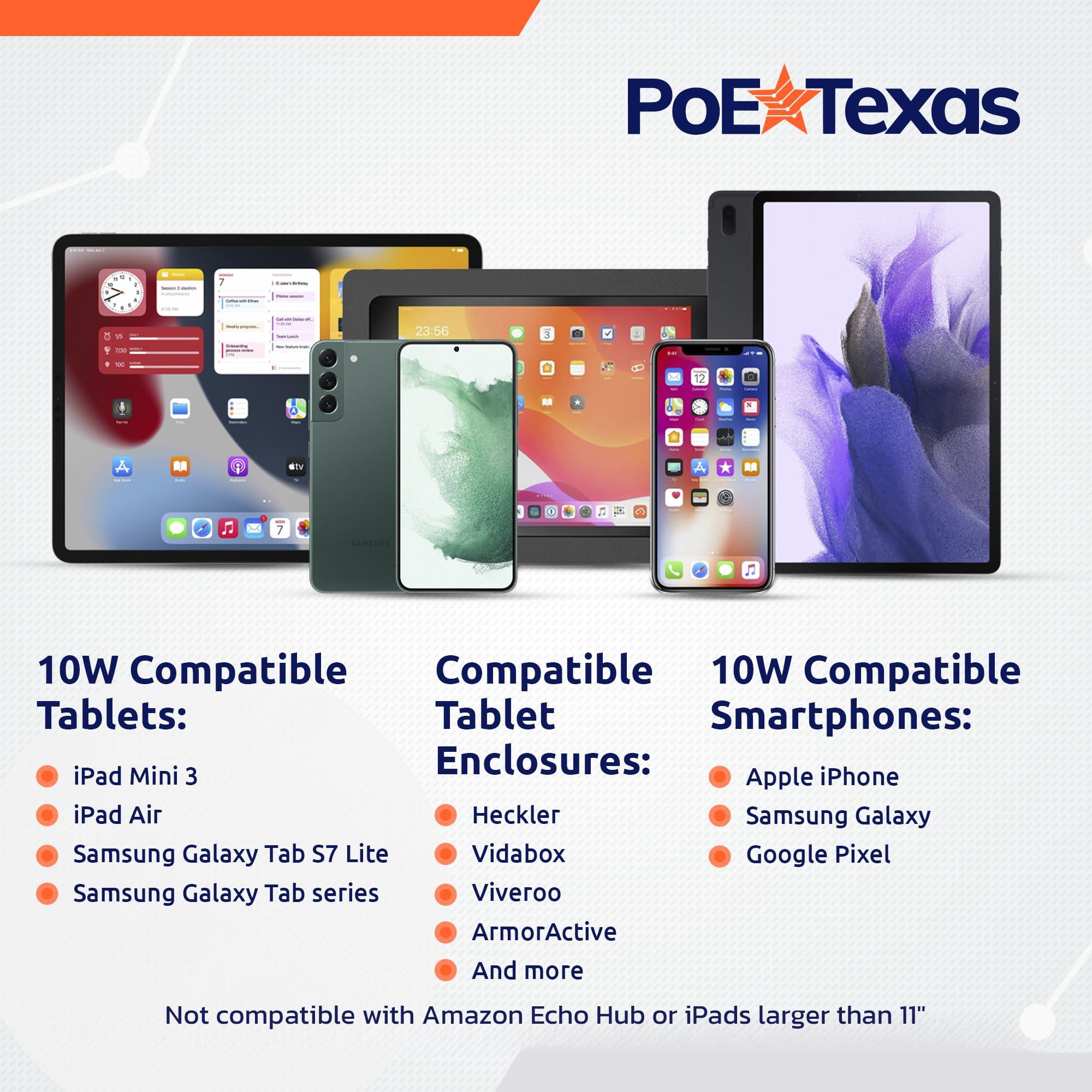 - Con quali tablet è compatibile? Include iPad di 10a generazione, Air e Mini, Samsung Tab, Lenovo, HP e altro ancora. Non compatibile con iPad Pro tablet più grandi o Microsoft Surface Go o Pro - vedi la nostra linea di prodotti PoE+ e PoE++.