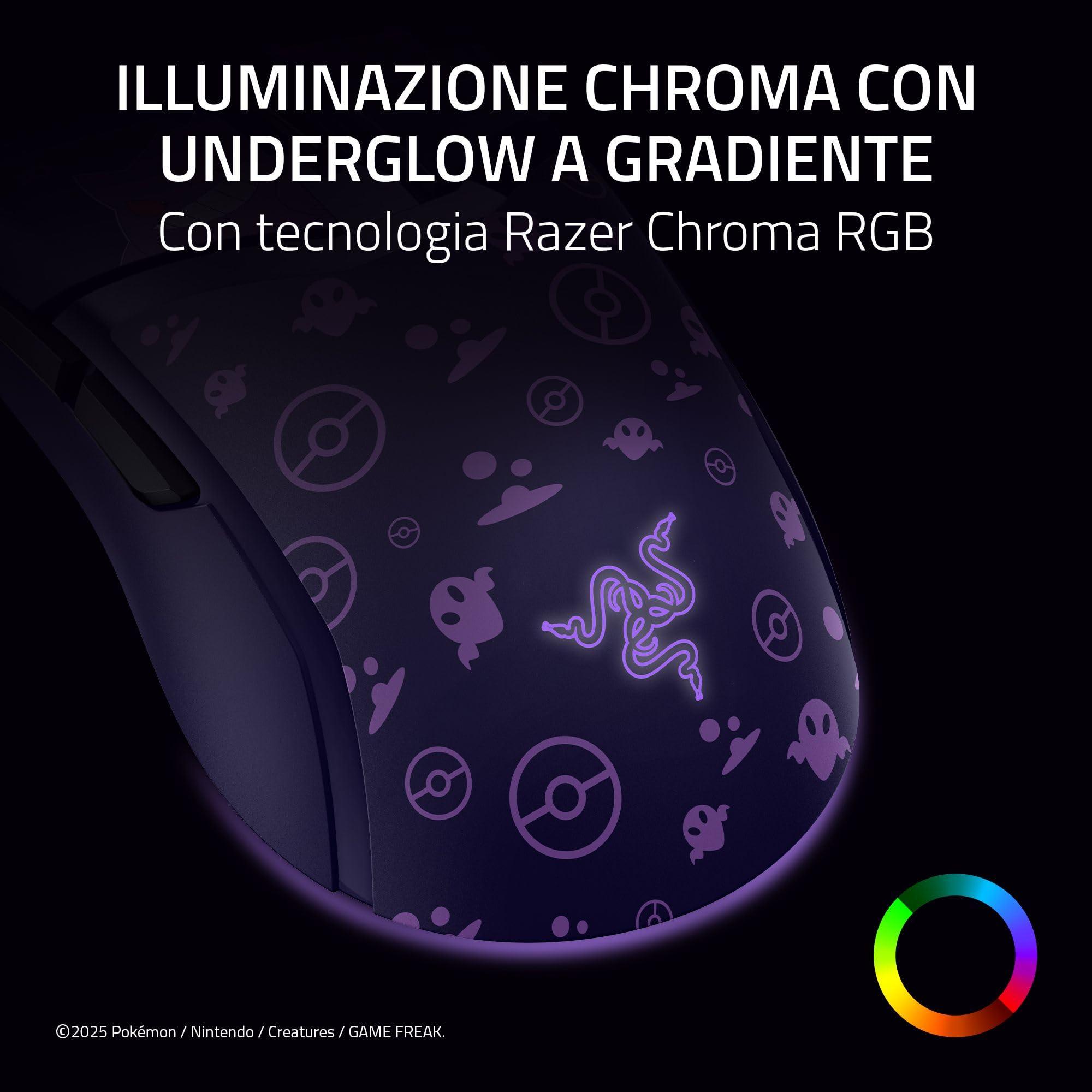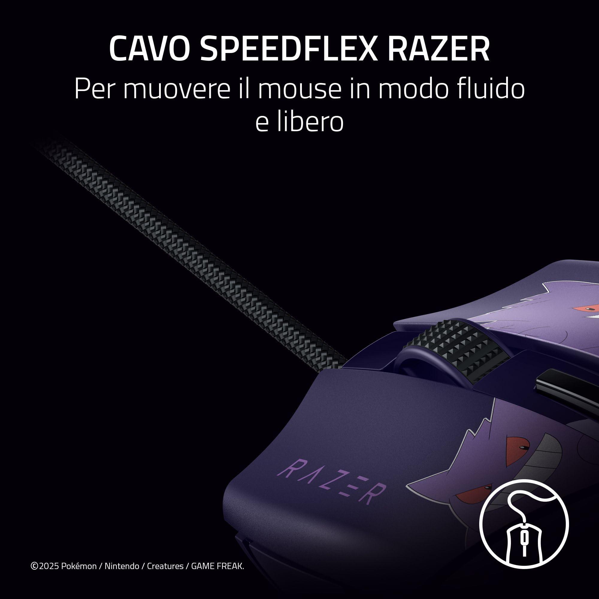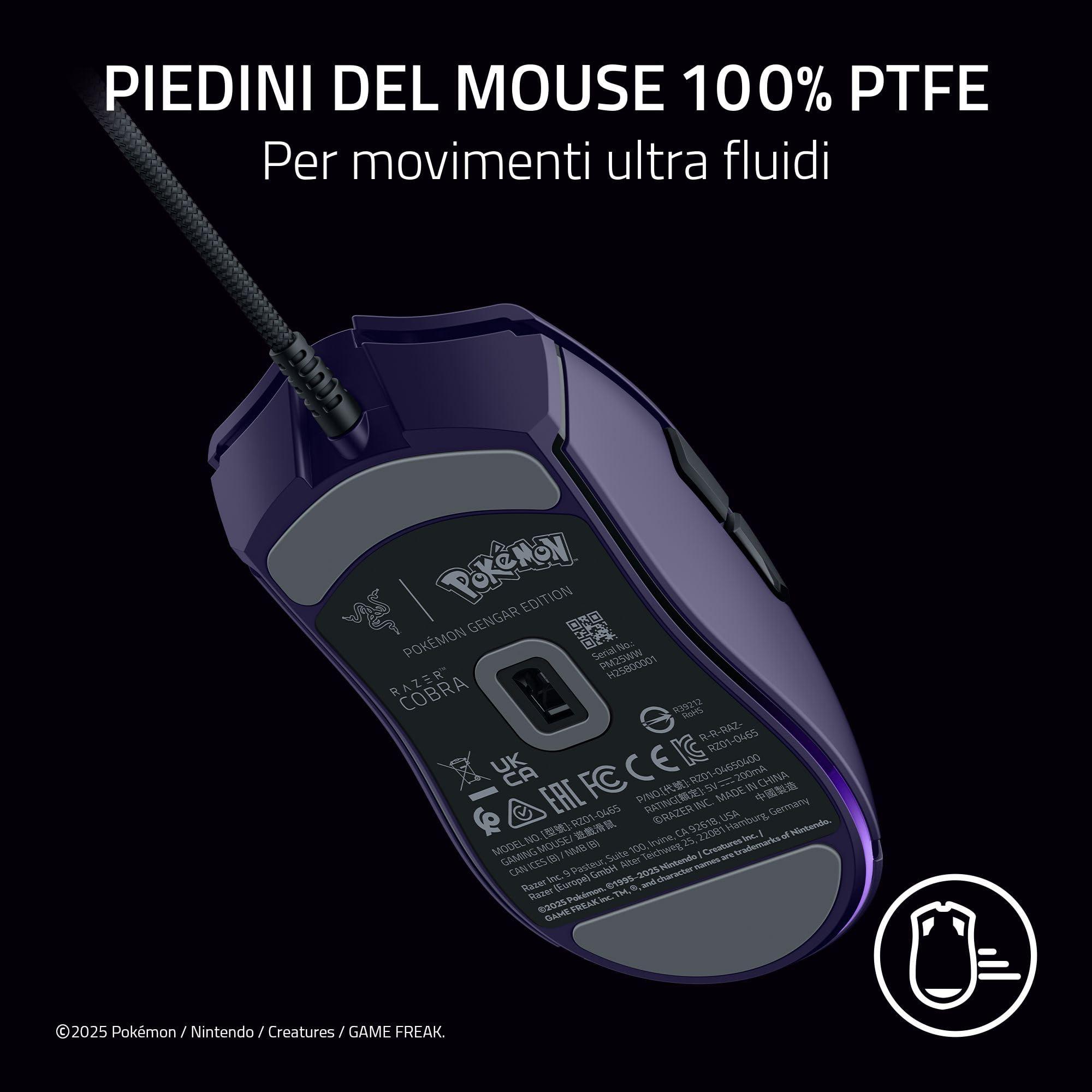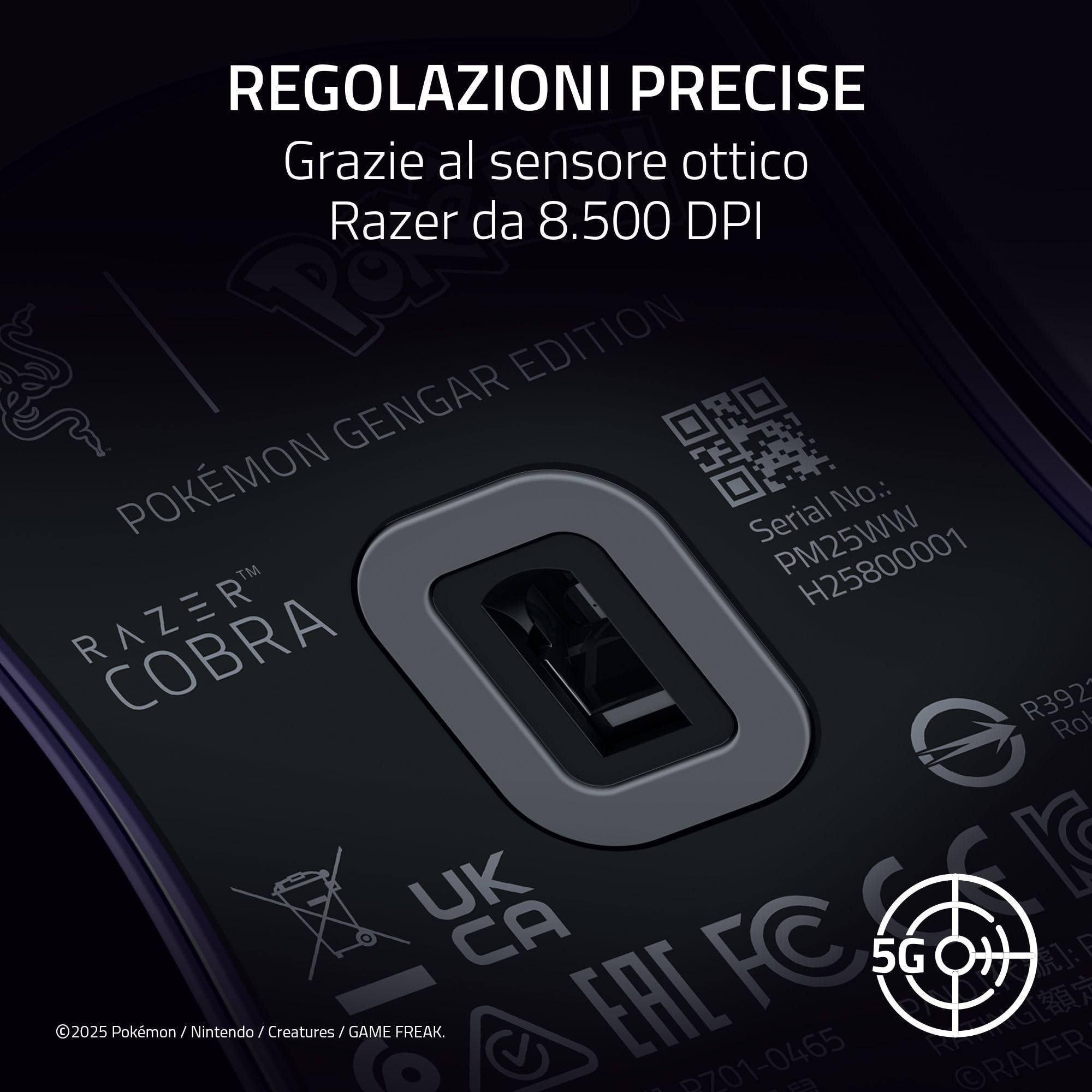 Razer Cobra Gengar Edition - Mouse da gioco leggero con cavo - Sensore da 8500 DPI - 58 g - Interruttori ottici di terza generazione - Illuminazione Chroma - Cavo Speedflex - PC/MAC | Pokémon Gengar
