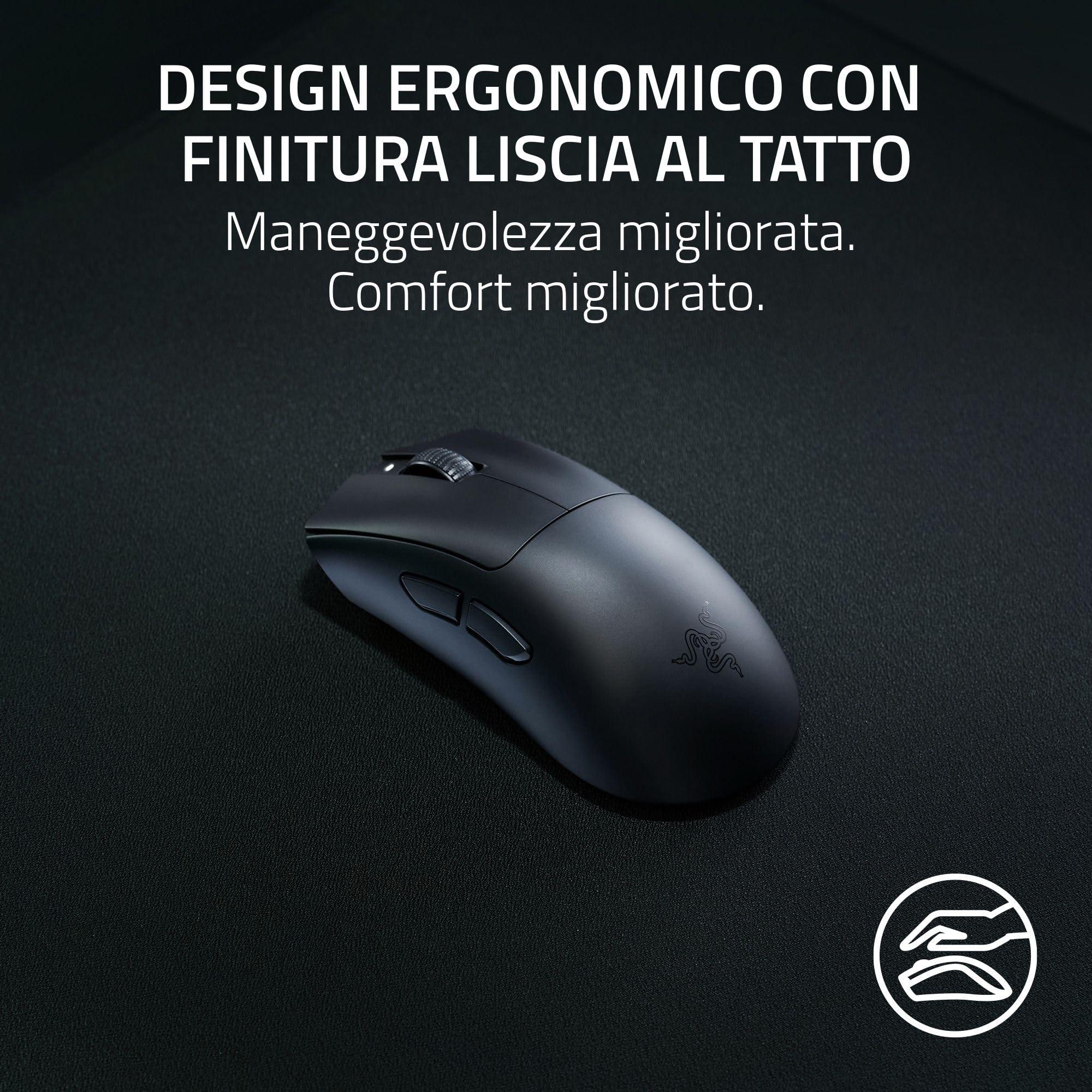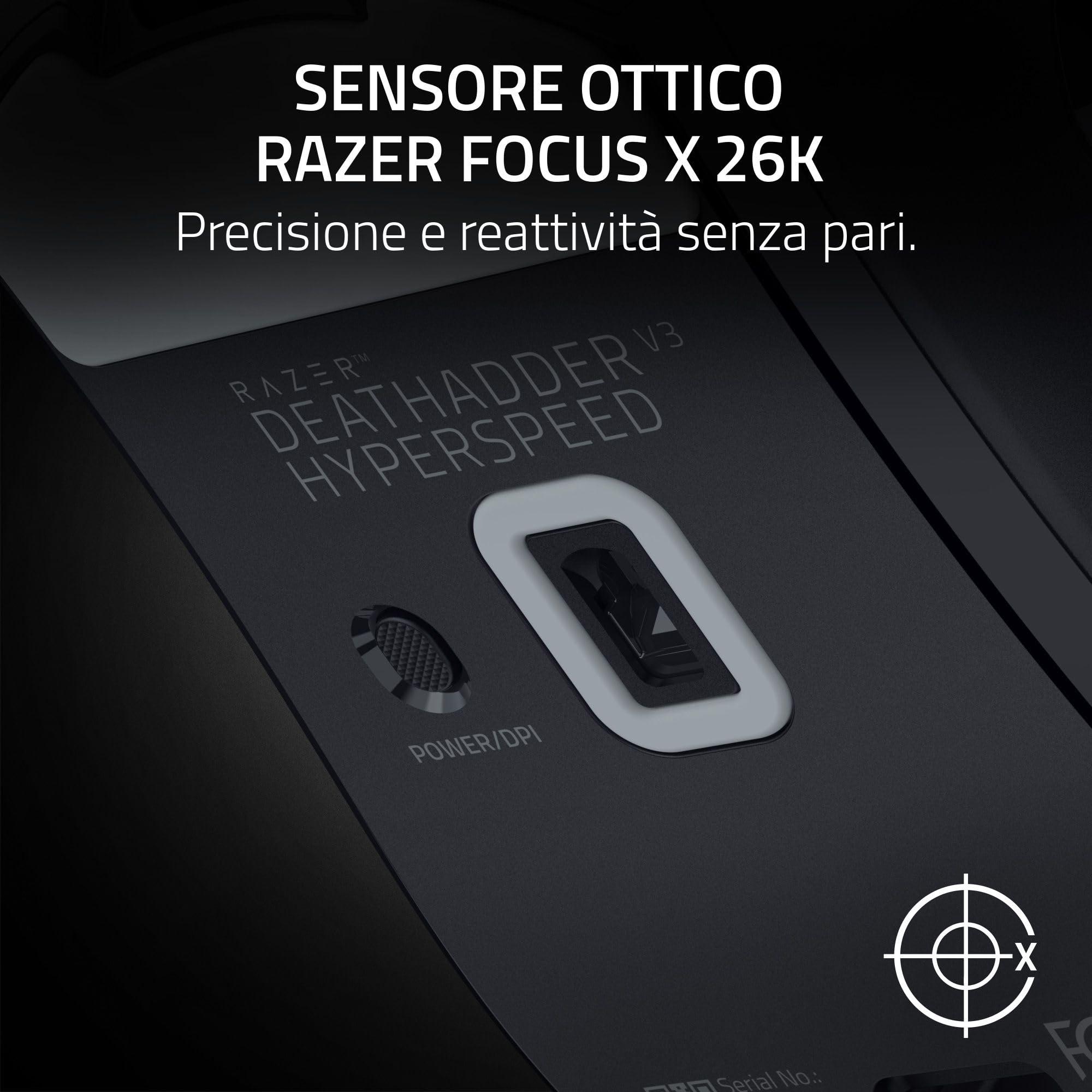 Razer DeathAdder V3 HyperSpeed - Mouse da gioco e-sport ergonomico senza fili ultra leggero con 26K DPI (55g, rivestimento soft-touch, 100 ore di durata della batteria, HyperSpeed 8K Hz) Nero