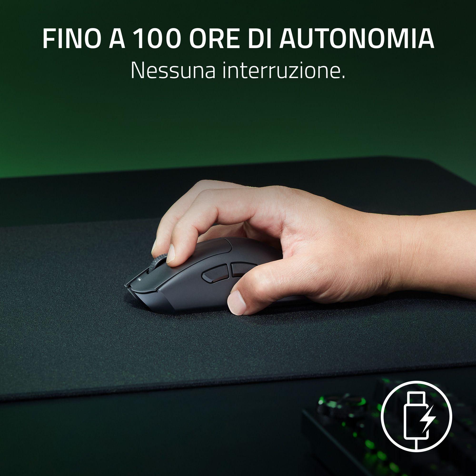 - Razer HyperSpeed Wireless - Sperimenta prestazioni wireless di prima classe, sempre fluide e affidabili, anche nei tornei con molte distrazioni. Il mouse è compatibile con l'adattatore wireless Razer HyperPolling per una frequenza di campionamento wireless di 8000 Hz.