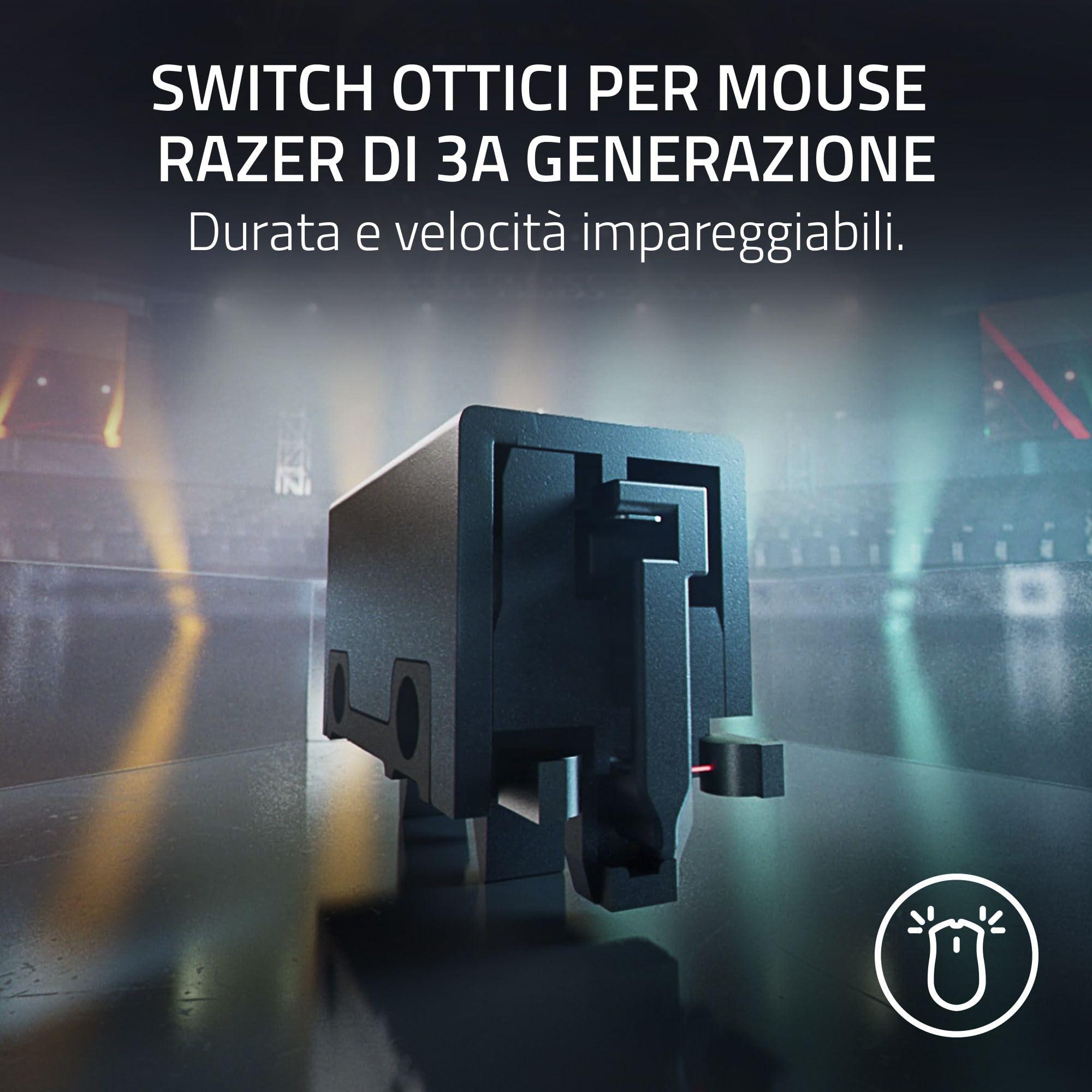 - Interruttori ottici per mouse di terza generazione Razer - Dalla durata di 90 milioni di clic e nessun errore di clic al tempo di attivazione incredibilmente veloce di soli 0,2 ms senza ritardo di rimbalzo, questo mouse offre il massimo in termini di affidabilità e velocità.