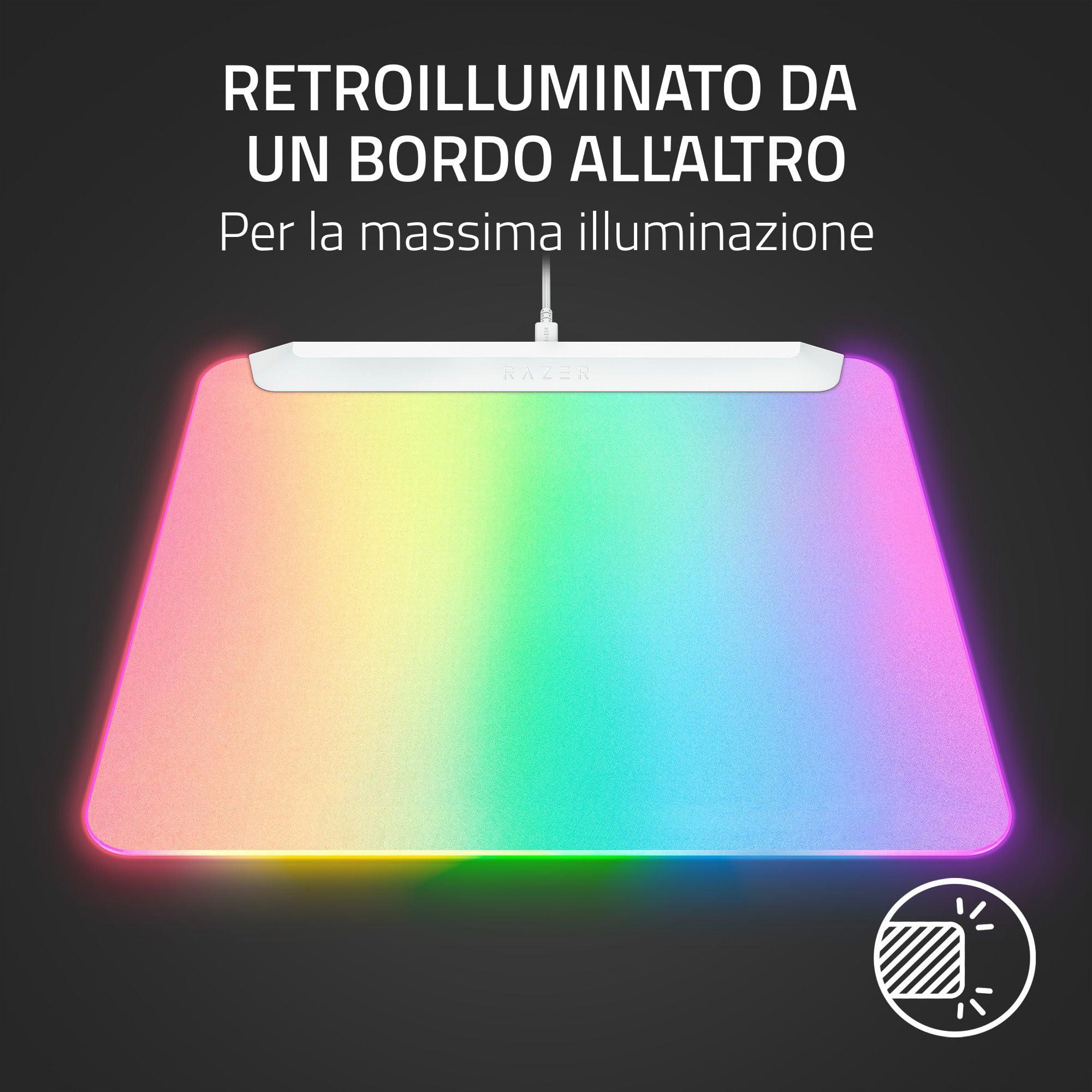 - Design retroilluminato da bordo a bordo - per la massima illuminazione: Realizzato per gli appassionati di RGB, la superficie smerigliata del tappetino cattura e amplifica il bagliore della potente striscia LED, ottenendo un'illuminazione vivida che si diffonde in ogni angolo della tela.