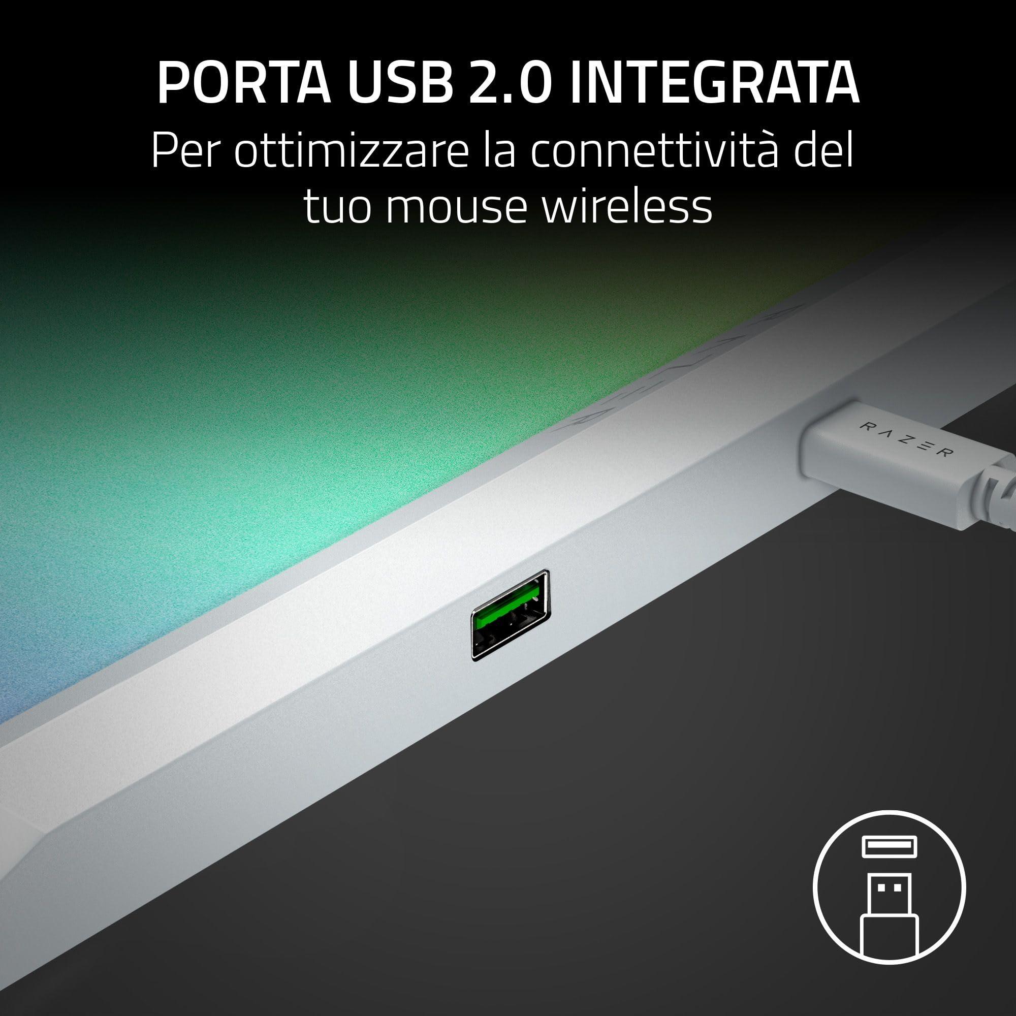 - Porta USB 2.0 integrata: per ottimizzare la connettività del mouse wireless: La porta USB integrata nel tappetino consente di collegare il dongle del mouse a pochi centimetri di distanza dal mouse, assicurando interferenze minime e massime prestazioni wireless.