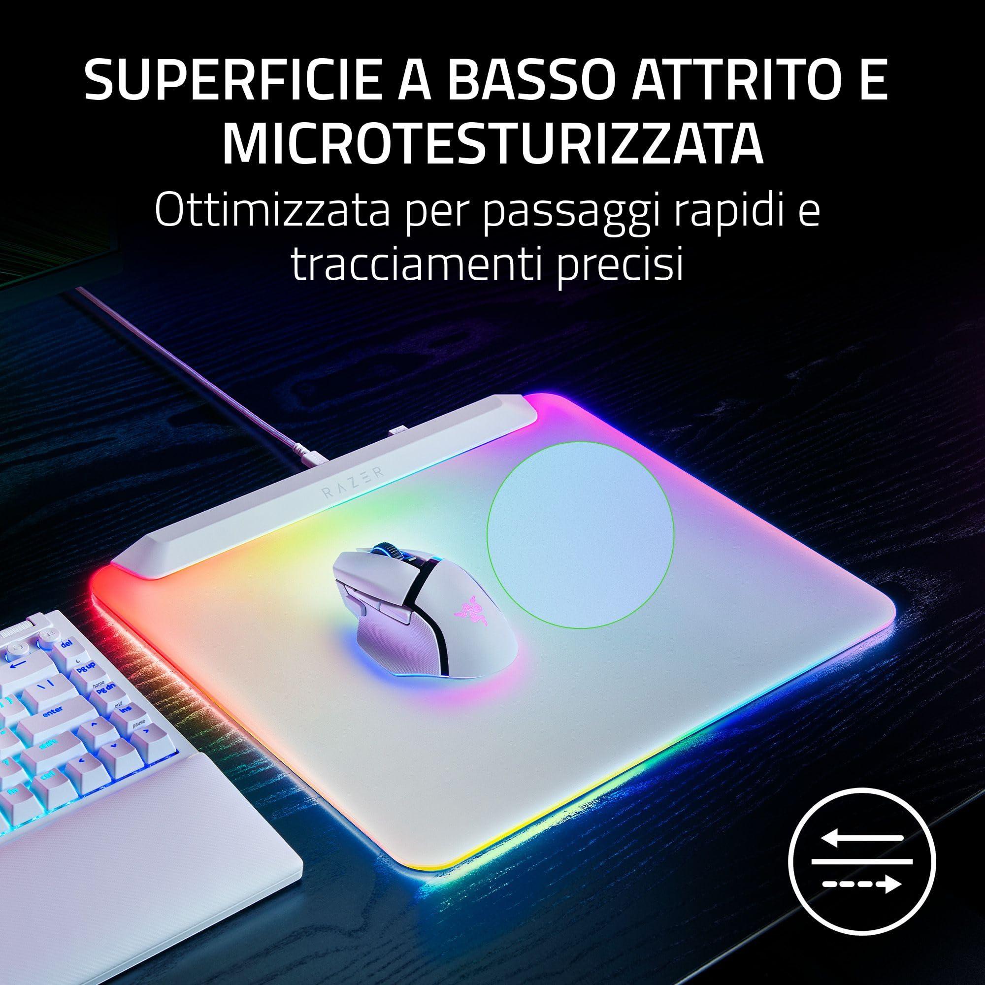 Razer Firefly V2 Pro - Tappetino per mouse da gioco retroilluminato RGB - Porta USB integrata (illuminazione LED a 15 zone, superficie strutturata micro-incisa, cavo USB-C staccabile) Bianco
