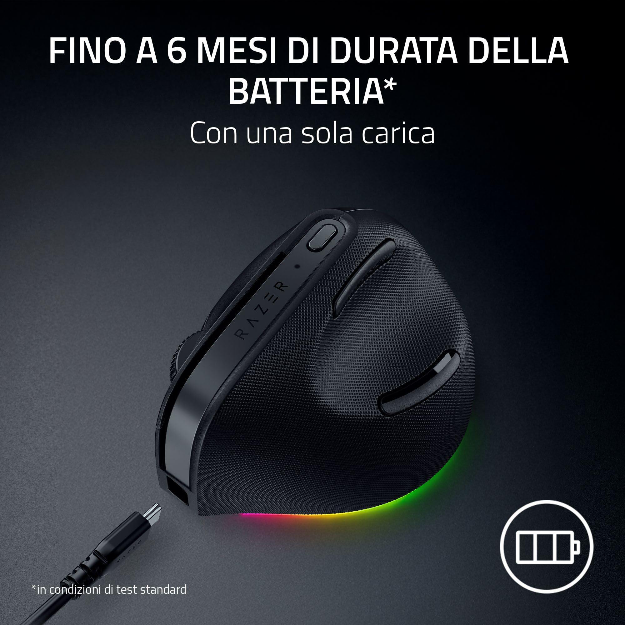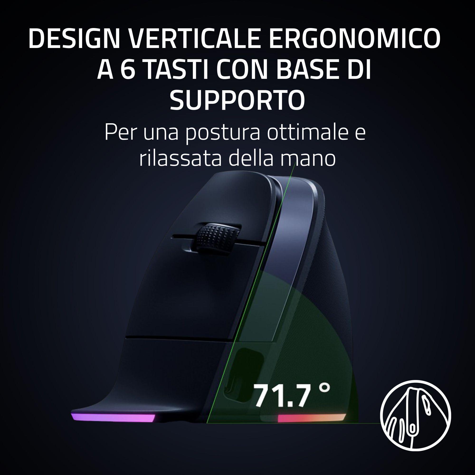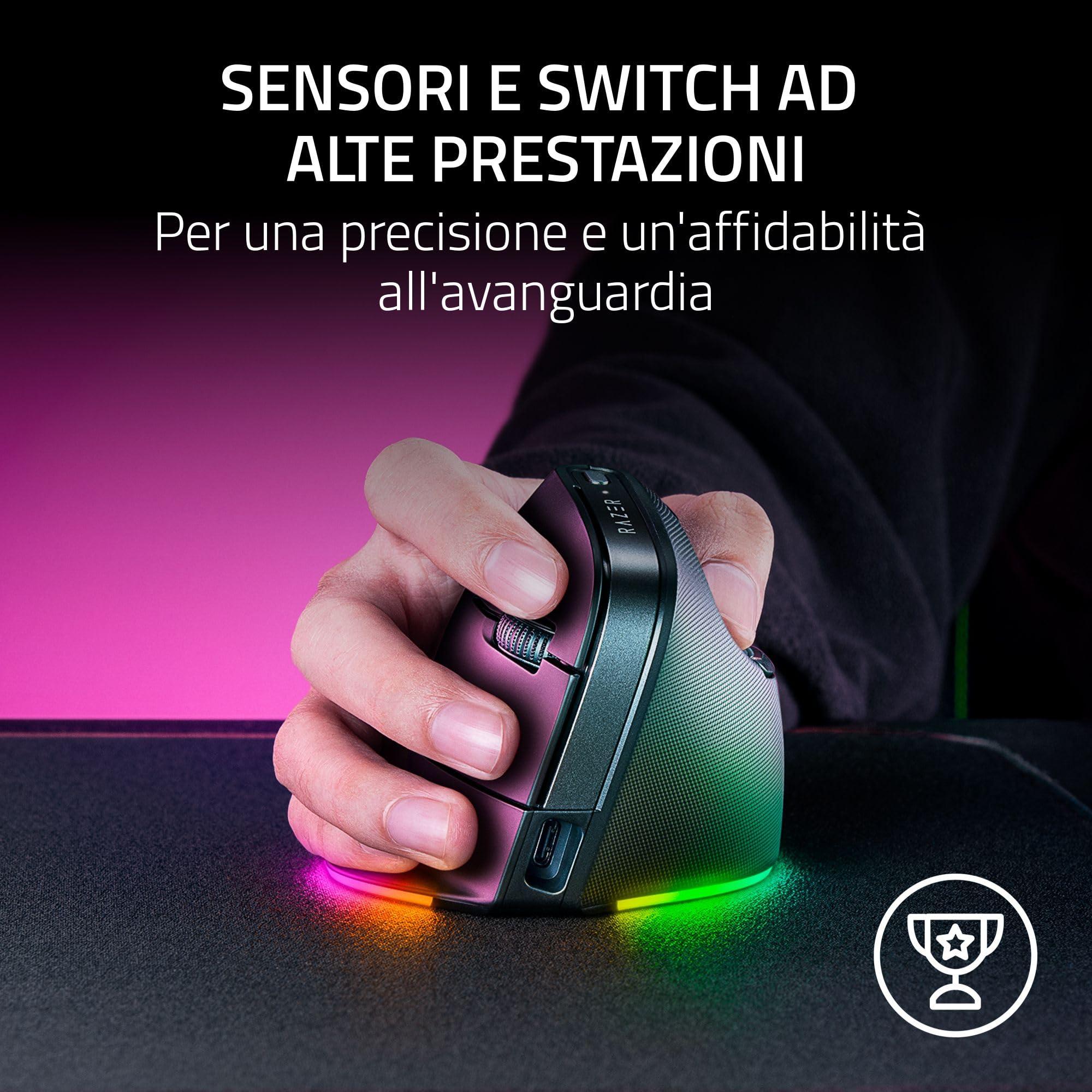 Razer Pro Click V2 Vertical - Mouse ergonomico verticale senza fili per utenti destrorsi - Assistenza IA Prompt - Sensore ottico 30K - Windows & Mac (batteria fino a 6 mesi, Chroma RGB) Nero