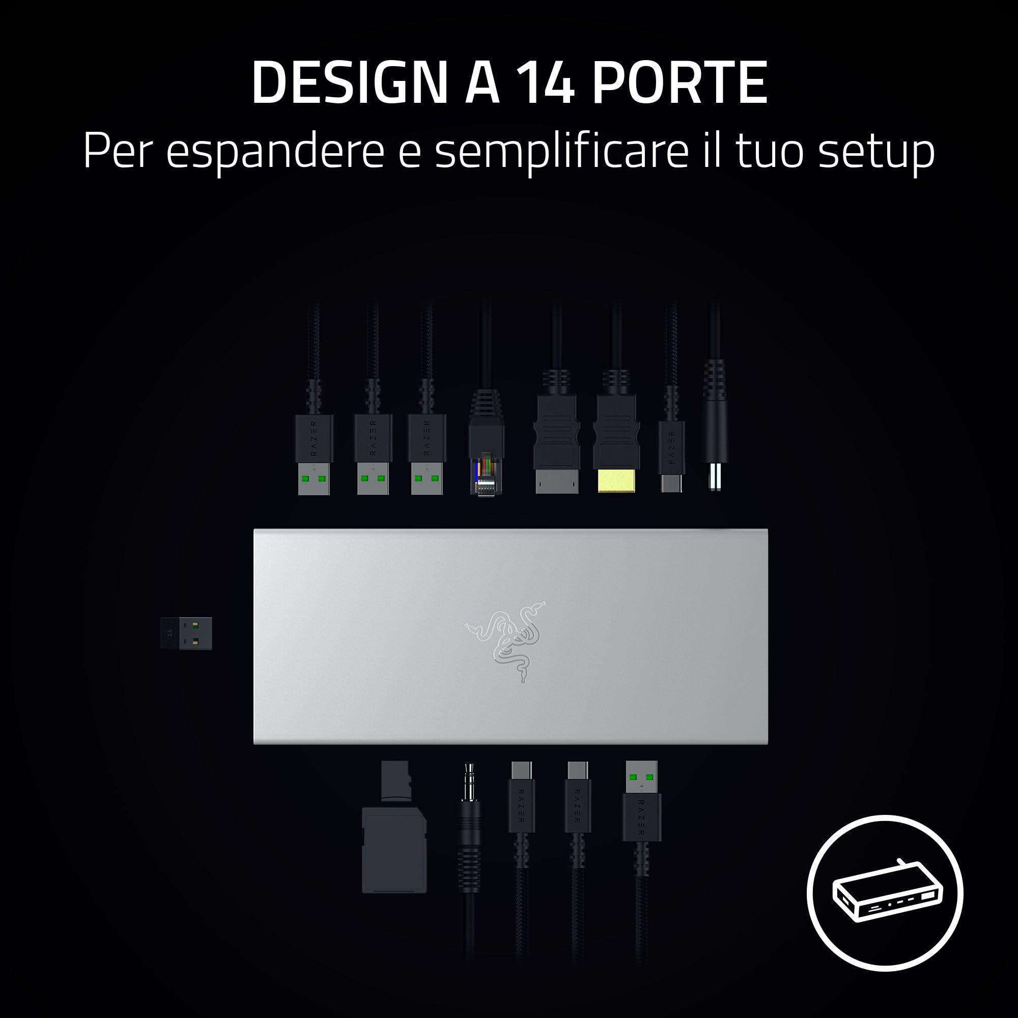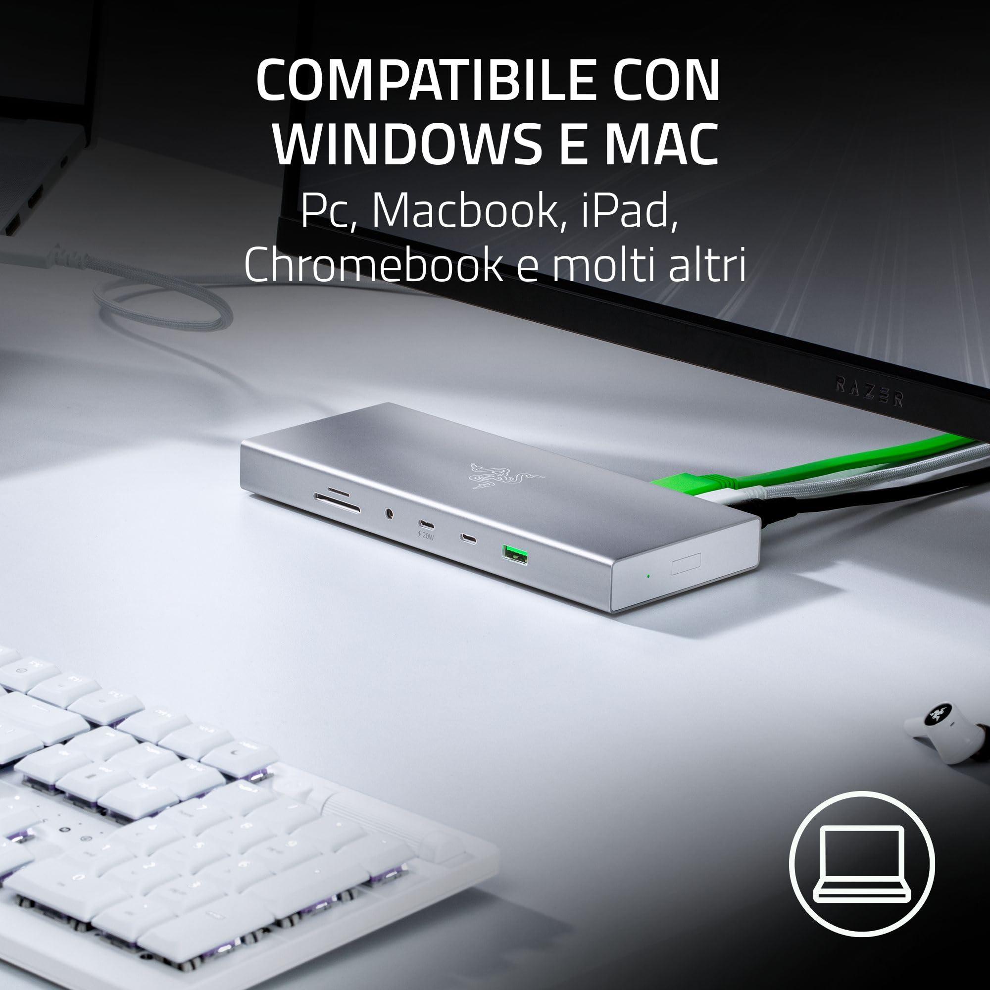 - Compatibile con Windows e Mac - PC, Macbook, iPad, Chromebook e altro: Grazie alle numerose porte di connessione per quasi tutti i dispositivi, il Razer USB 4 Dock è il complemento perfetto per le configurazioni desktop e le postazioni di lavoro mobili.