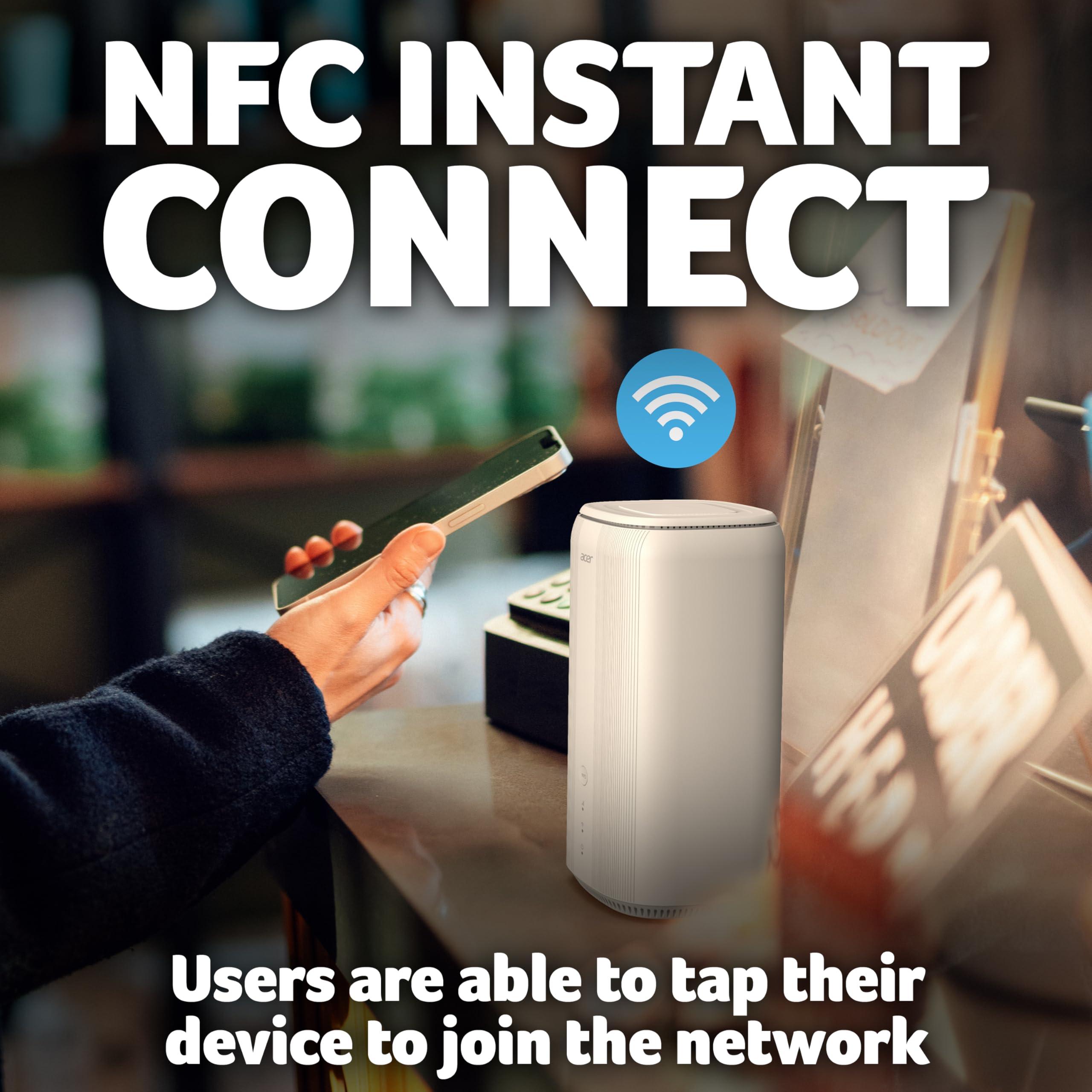 Router 5G Acer Connect X6E, WiFi 6E, Connessione istantanea NFC, Tecnologia 4x4 MU-MIMO, Supporto Multidispositivo