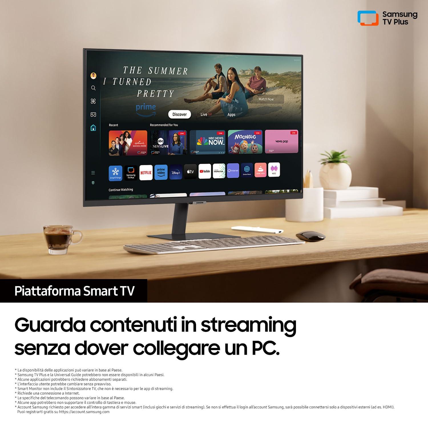 - Smart TV Apps: Accesso immediato ai tuoi contenuti di streaming preferiti. Naviga e goditi i contenuti direttamente dal tuo monitor in tutta facilità.