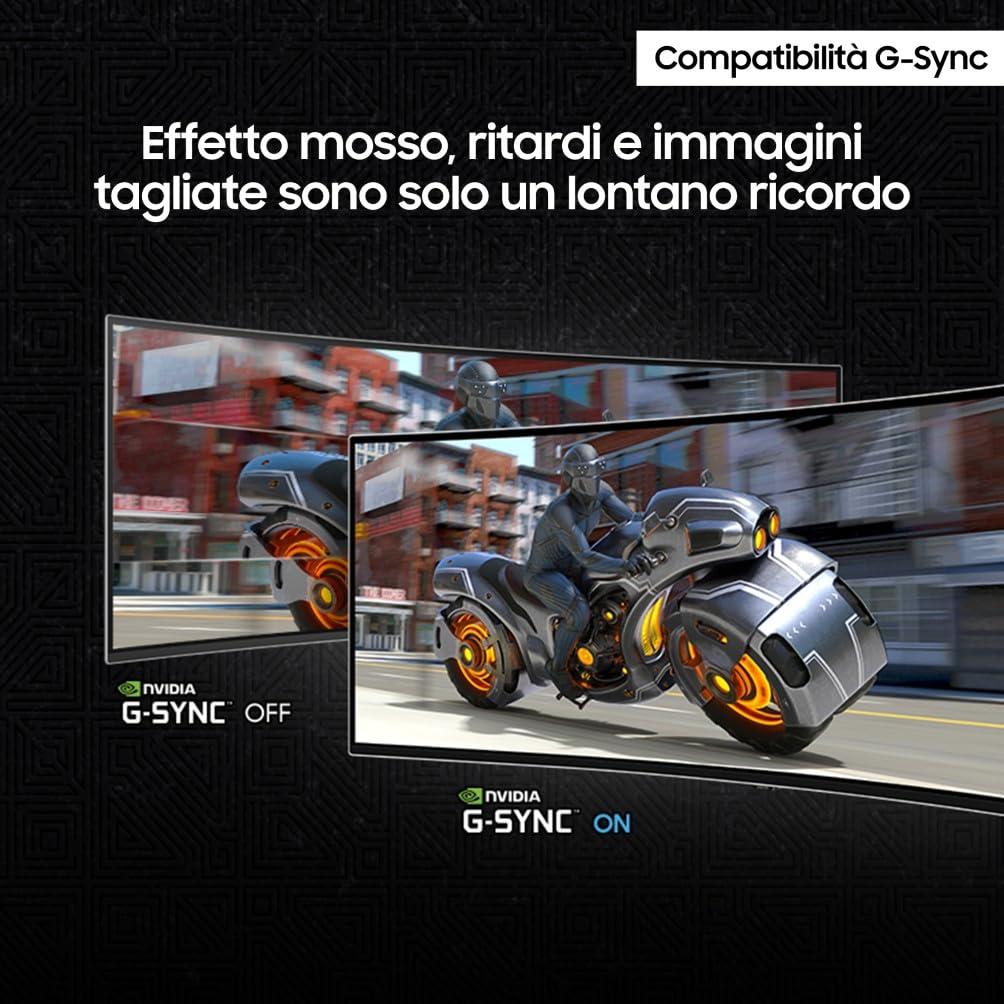 Samsung Monitor Gaming Odyssey OLED G9 (S49DG934), Curvo (1800R), 49'', 5120x1440 (DQHD), 32:9, HDR10+, QD-OLED Glare Free, 240Hz, 0,03ms (GtG), Compatibilità G-Sync, HDMI, Micro HDMI, DP