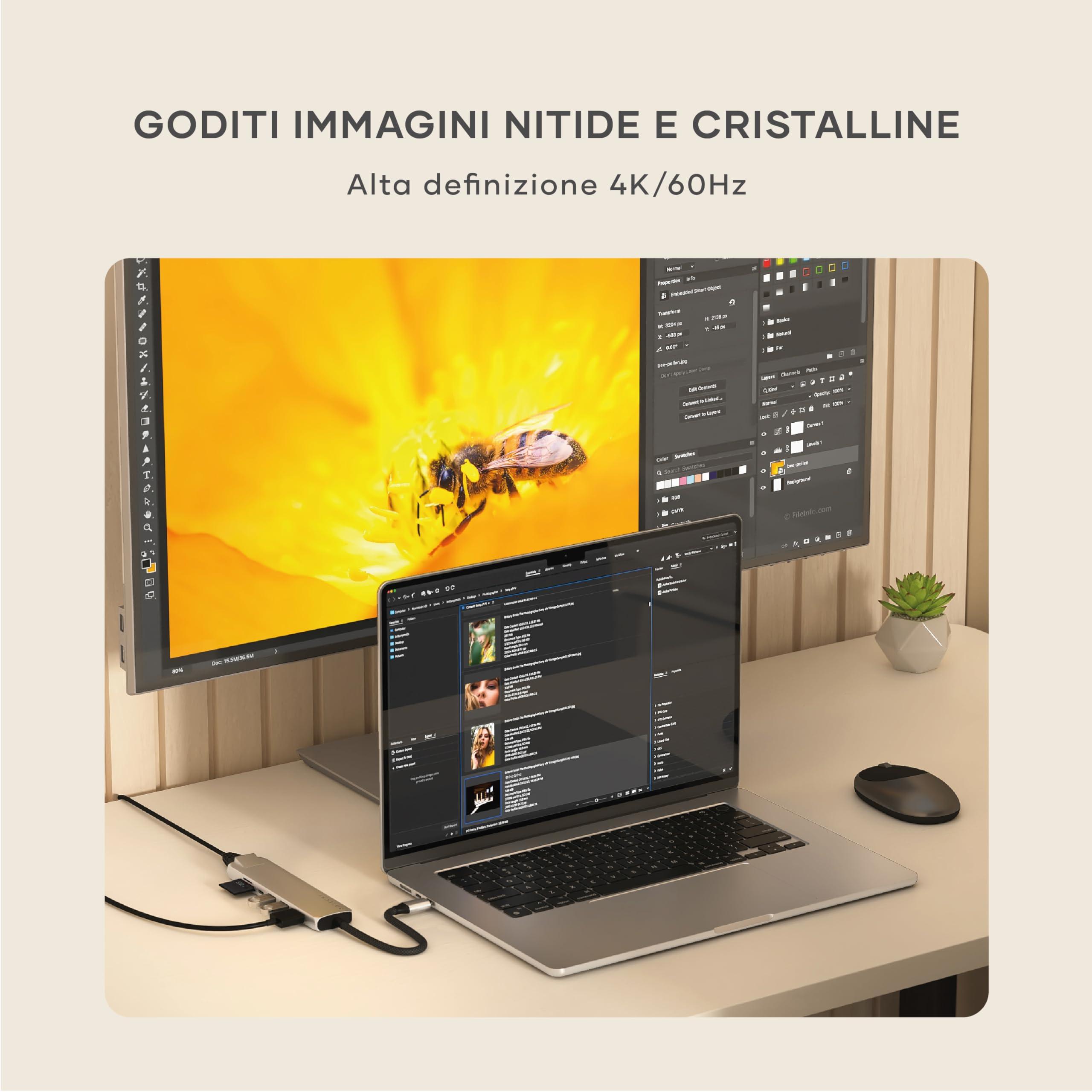 - Compatibilità ampia e immediata: Funziona con MacBook, Windows e iPad grazie alla tecnologia USB-C moderna. Un hub USB-C per laptop ideale per chi vuole una soluzione universale, semplice e senza dongle aggiuntivi.