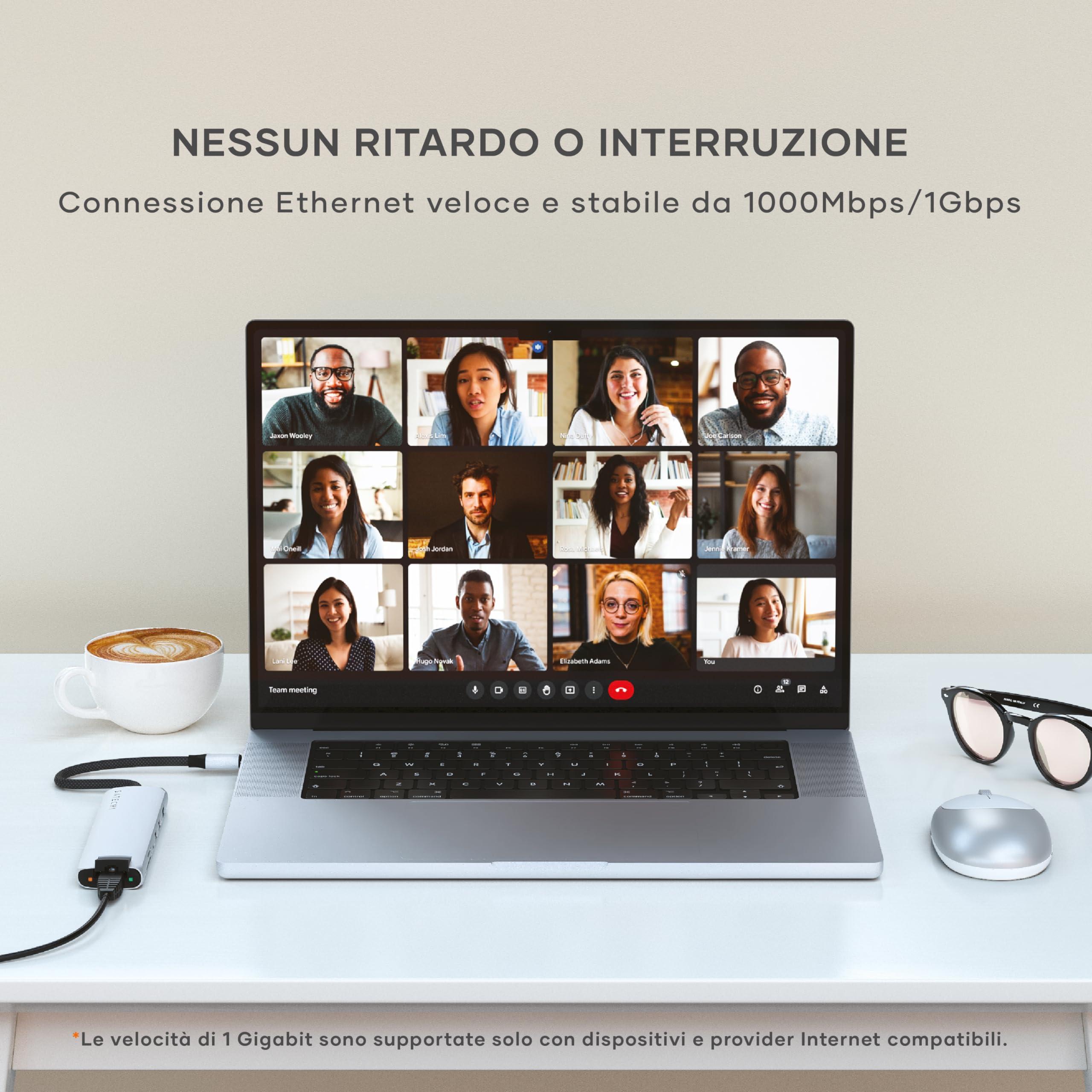 - Connessione affidabile con Ethernet integrata: L’adattatore USB-C Ethernet offre una rete stabile anche quando il Wi-Fi è debole. Perfetto per videochiamate, smart working e trasferimenti pesanti con prestazioni costanti.