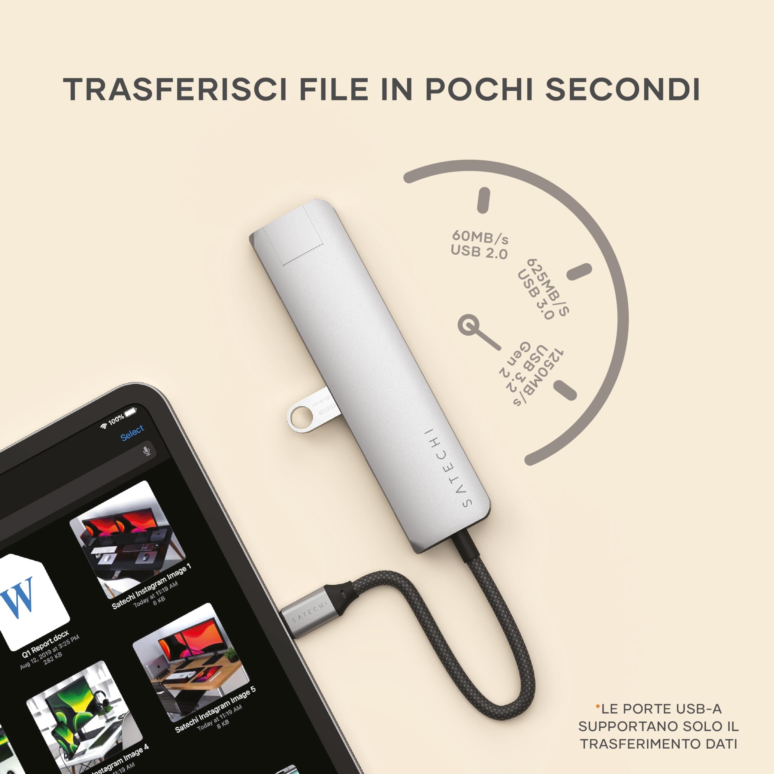 SATECHI 7 in 1 USB C Hub Slim Plus, HDMI 4K a 60Hz, PD da 100W, 2x Porte USB-A, Ethernet, SD/MicroSD – per MacBook Air e Pro, iPad, iPhone, Windows, Surface, ThinkPad, Chromebook – Grigio Siderale