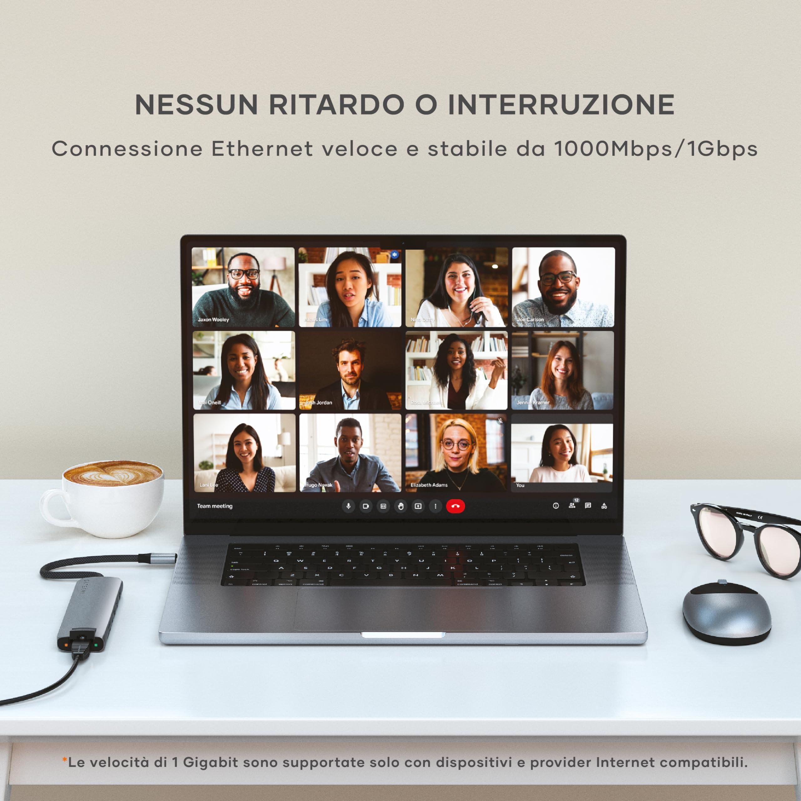 Un hub 7-in-1 con Ethernet, HDMI 4K, PD e lettori schede: versatile e ideale per lavoro e viaggi.