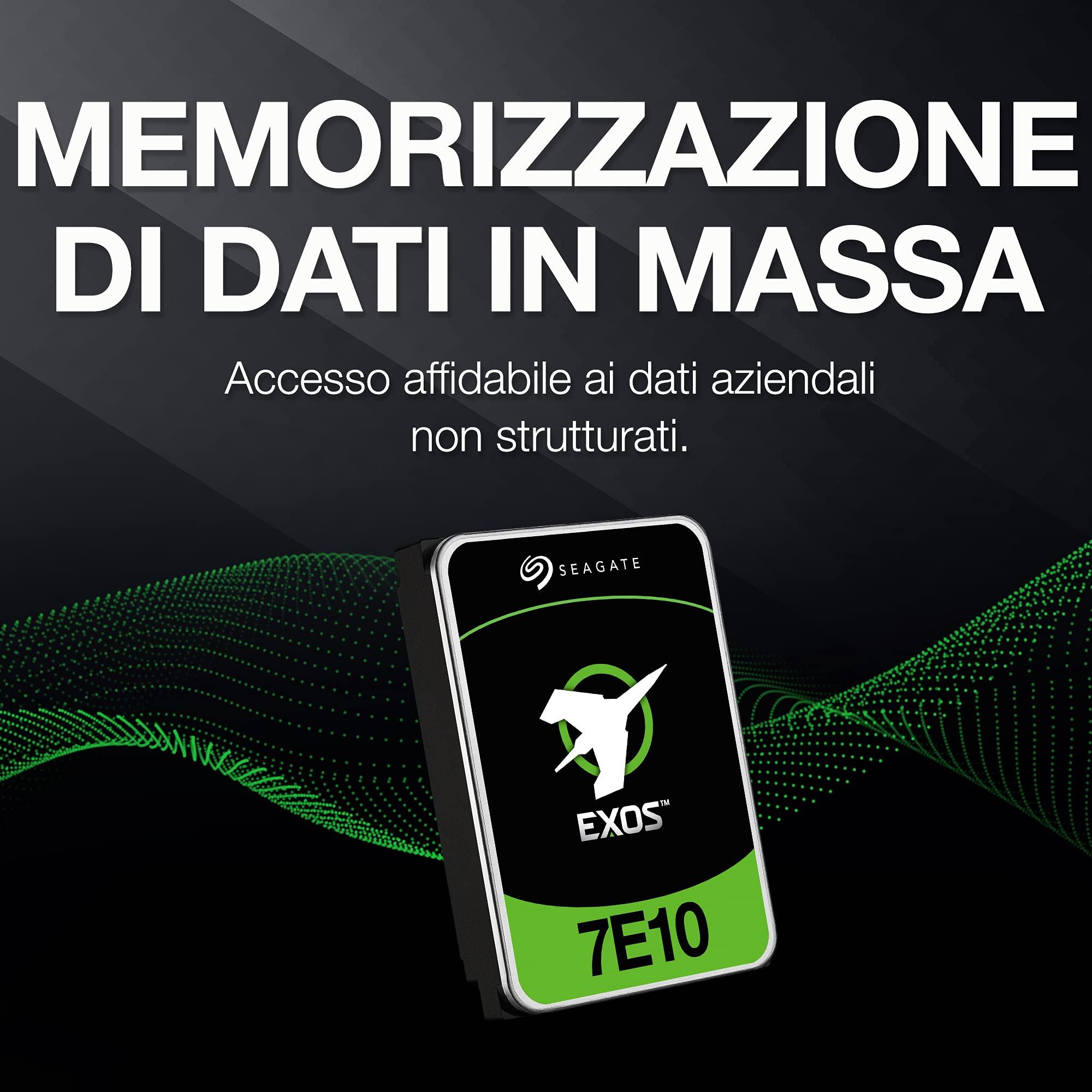- AFFIDABILITÀ ECONOMICA: progettate per supportare fino a 10TB per unità, le unità Exos 7E10 offrono soluzioni per la memorizzazione di grandi quantità di dati per infrastrutture di data center che necessitano di unità disco classe Enterprise estremamente affidabili.