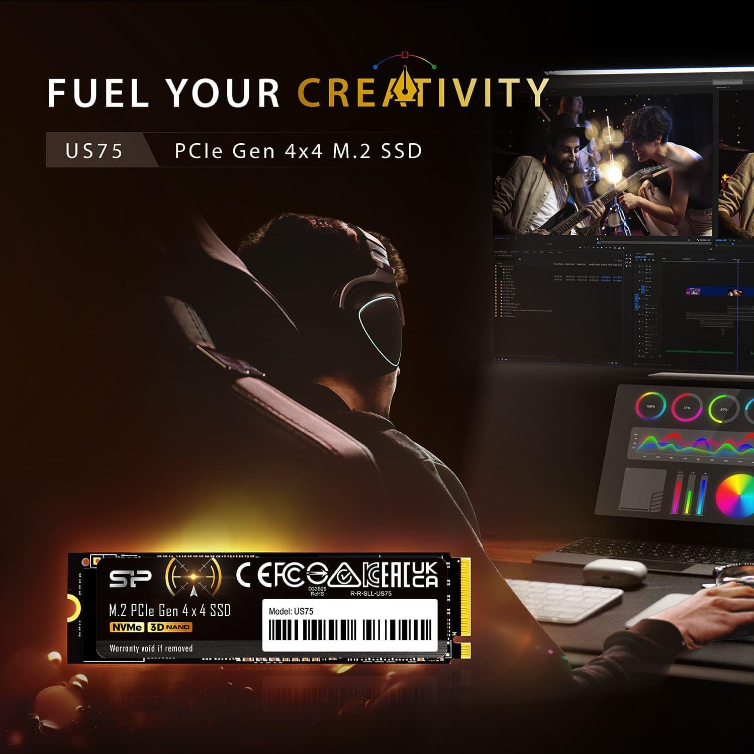 Silicon Power SP Silicon PowerSSD 4TB US75 Series M.2 2280 NVMe4.0 Gen4 PCIe M.2 Max Read 7000MB/s Max Write 6500MB/s 5 anni di garanzia SP04KGBP44US7505