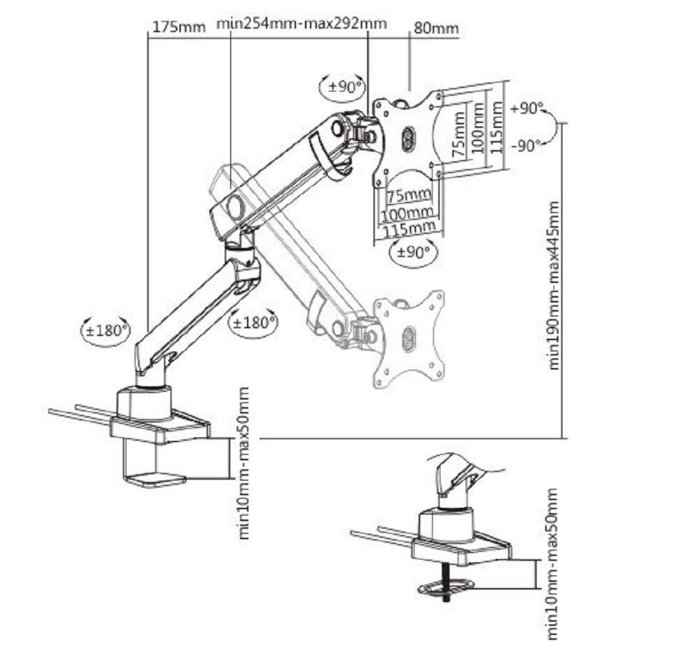 - Compatibilità: il supporto da scrivania per monitor si adatta a schermi da 17" a 32" e può contenere fino a 8 kg per braccio con fori di montaggio VESA da 75 x 75 mm e 100 x 100 mm.
