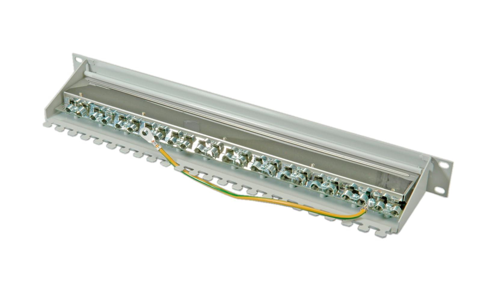 24 RJ45, 24 femelles RJ45, completement blinde, avec protection anti-torsion integree(pour mâles RJ45/11/12), adapte pour PoE (Power over Ethernet), plaque conductrice horizontale, connexion via pinces LSA-Plus, RAL 7035 boîtier en metal (J02023A0050/J02023A0060/J02023K0060)