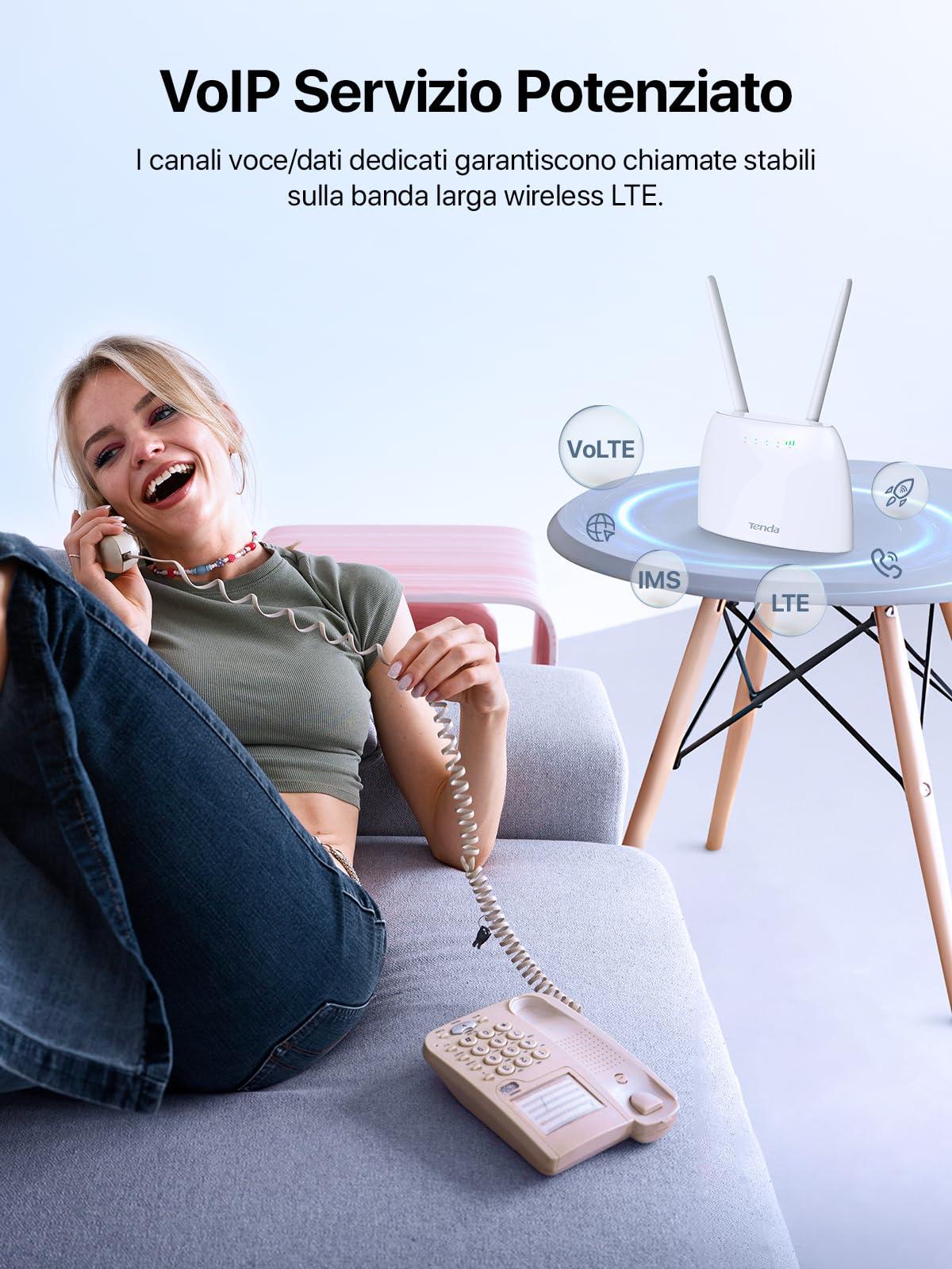 Tenda 4G06 Router 4G VoLTE Cat4 Wireless 300Mbps, Router WiFi con SIM, 2 Antenne Rimovibili, Porta LAN/WAN, Modem 4G SIM, Senza Configurazione, Plug&Play