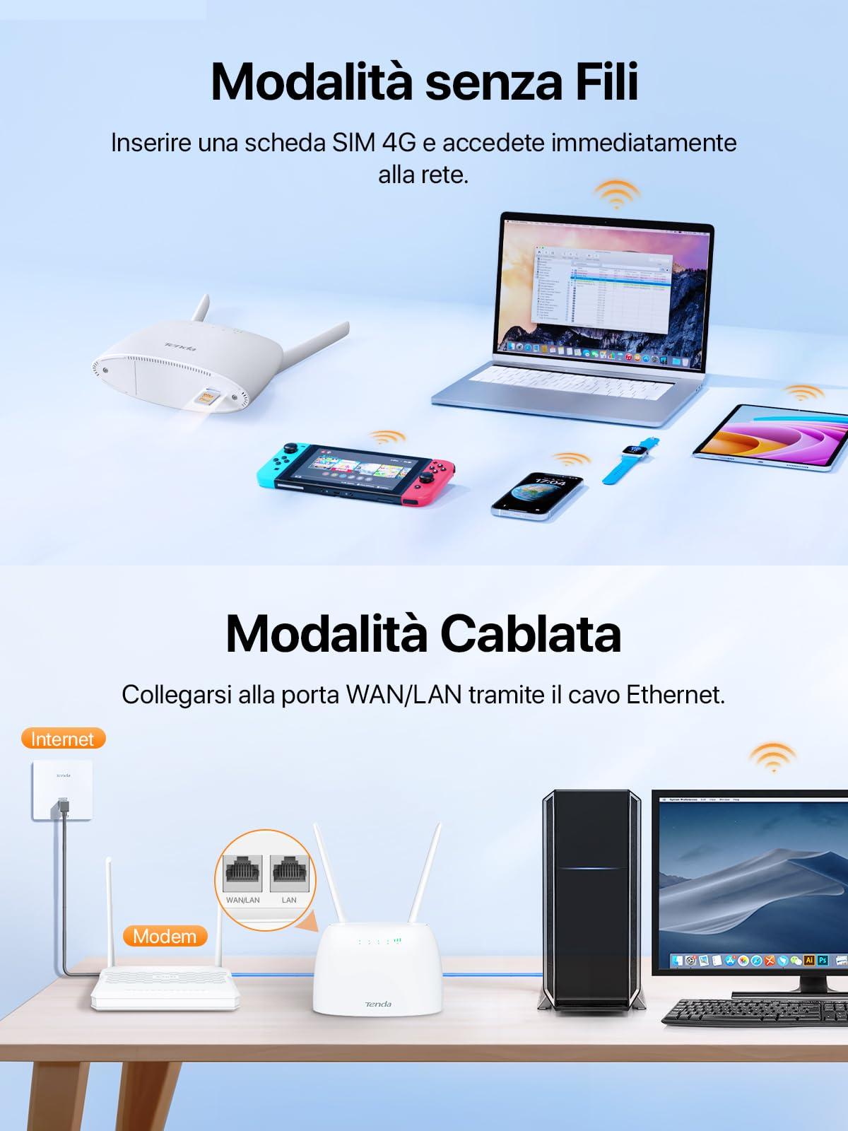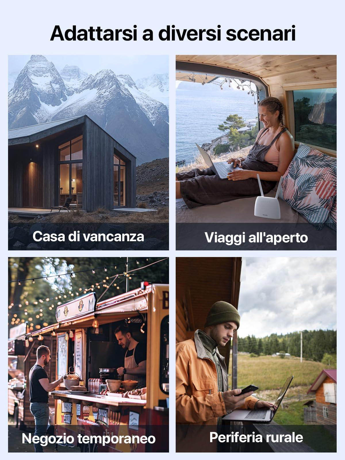 - [Inserisci e Gioca · Online in 1 Minuto] Basta inserire una scheda Nano SIM 4G e accendere il router con sim per connettersi all'istante, senza tecnico. Ideale per aree senza banda larga fissa o come connessione di backup affidabile per case suburbane, affitti e camper.
