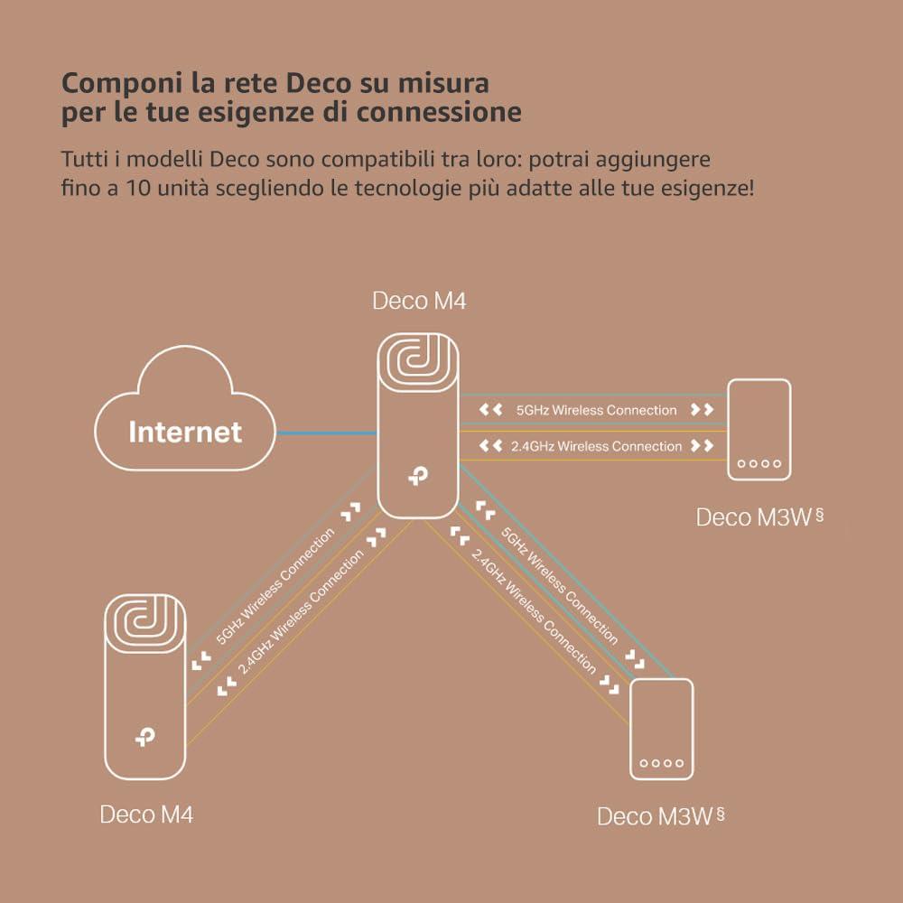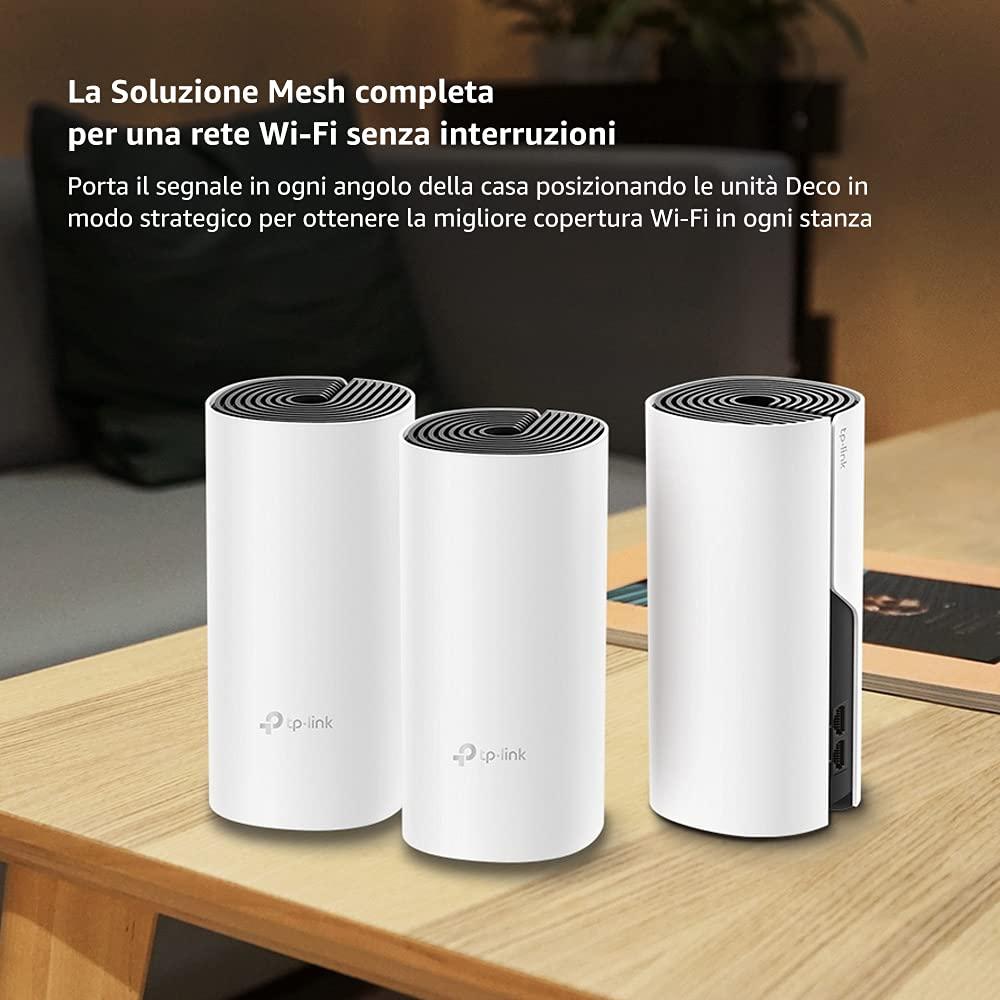 TP-Link Deco M4 WiFi Mesh, Dual Band AC1200, 2 Porte Ethernet Gigabit, Modalità Router e Access Point, Parental Control, 3 Pezzi con Copertura fino a 370 m2