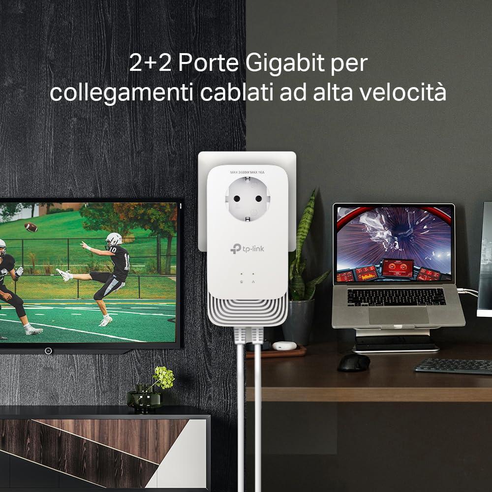 TP-Link PG2400P KIT Powerline Passante G.hn2400, G.hn Wave2 MIMO, 2+2 Porte Gigabit Ethernet, Presa Di Alimentazione Extra, Modalità Di Risparmio Energetico, Plug & Play