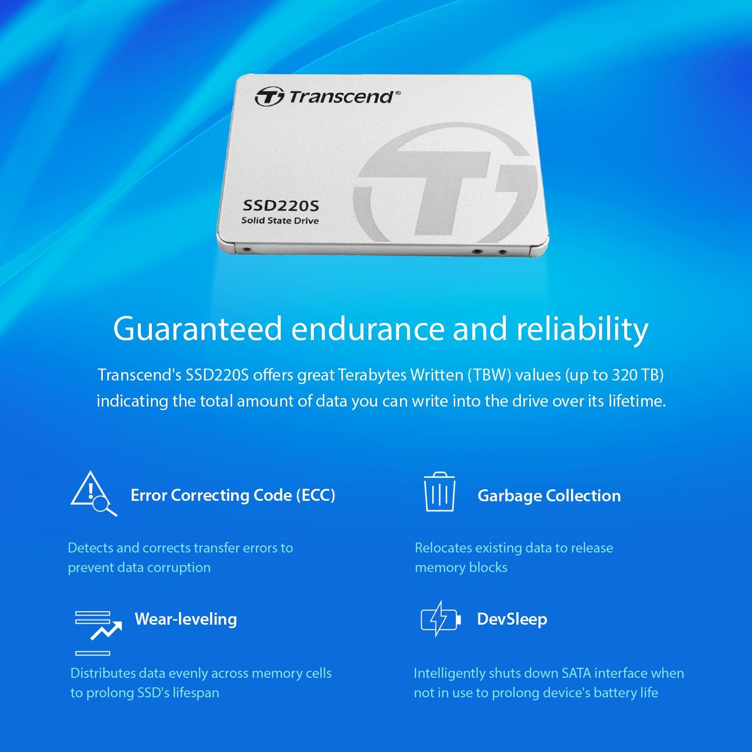 Transcend SSD interno da 480 GB SSD220S SATA III 6 Gb/s 2,5 pollici, memoria 3D TLC NAND - TS480GSSD220S